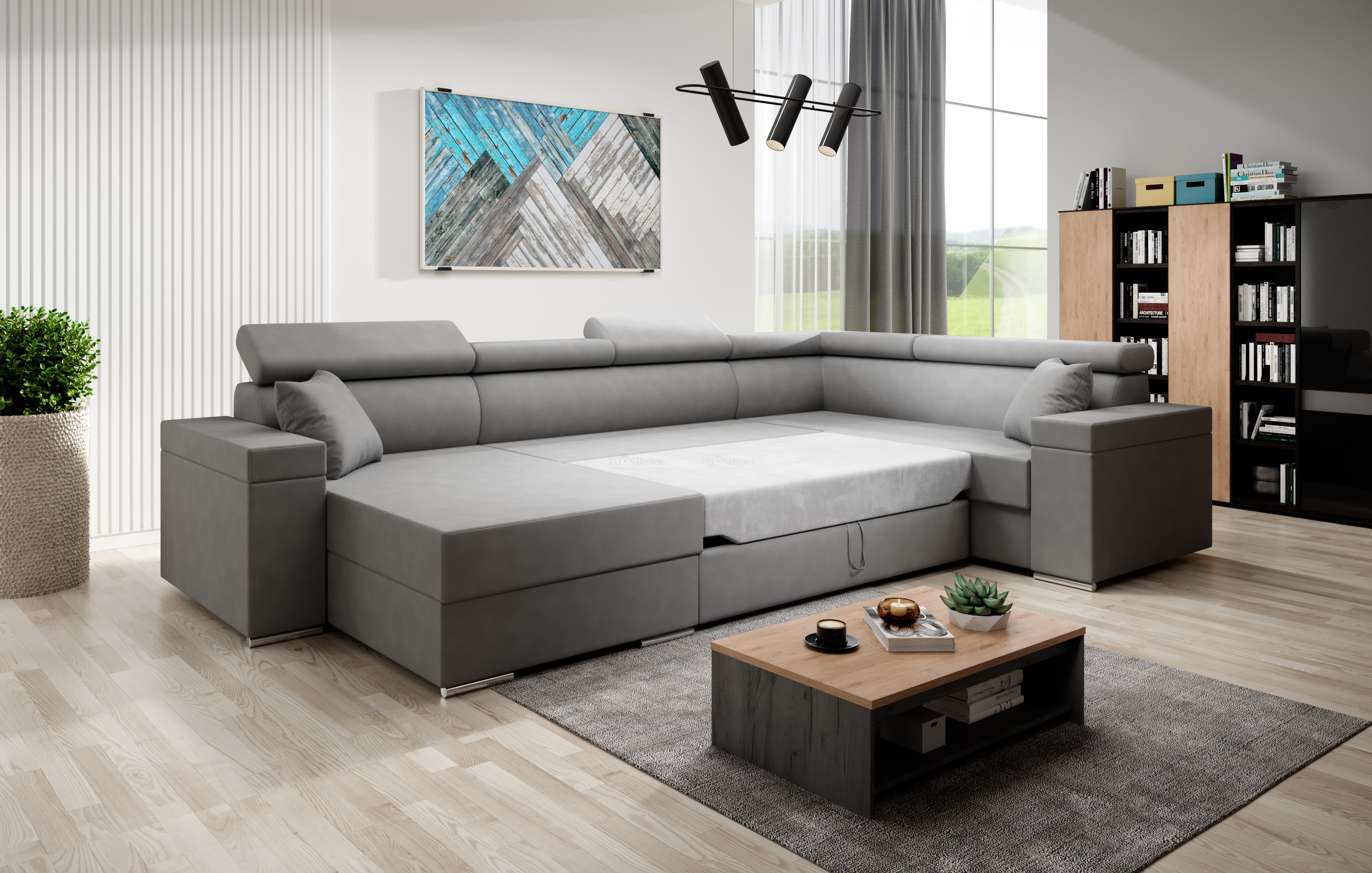 Sedací souprava Svenia bis go je ideální pro ty, kteří ocení komfort a pohodlí. Velice prostorná sedačka pro početnou rodinu, která má ráda kvalitní odpočinek. Díky této designové sedačce si dopřejete jen ten nejlepší. Tkanina vysoké kvality, masivní pevná kostra, pružinové jádro faliste s kvalitní HR pěnou zaručují komfortní posezení. Plocha po rozložení 130x270cm. Sedací souprava má také praktické dva úložné prostory pro uložení lůžkovin, které se nachází v bočních otomanech. Velkou předností této sedačky jsou polohovatelné záhlavníky, díky kterým si dopřejete luxusní opření. Je čalouněná látkou Soro 86. V nabídce i v jiném barevném provedení. Vyberte si tak tu, která Vám bude nejvíce vyhovovat.