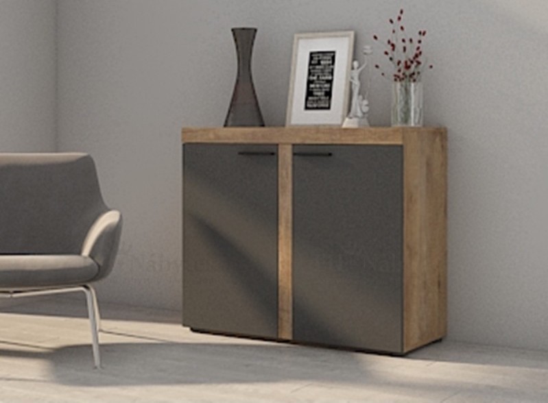 Komoda Rumbaso je vyrobená z kvalitního lamina v provedení dub lefkas / grafit. Komoda je vhodná k obývací stěně Rumbaso. Rozměry jsou 97,2 x 82 x 40,3cm. Zadní část komody je v černém provedení. Dvířka a korpus jsou vyrobeny z kvalitního lamina 15mm. Doporučujeme dokoupení LED osvětlení. Dodávano v demontu.