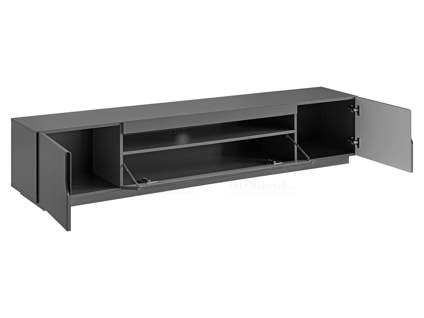 Skříňka TV Aston je nabídkou pro osoby hledající moderní nábytek. Korpus prvku je vyroben z vysoce kvalitní laminované desky, odolné vůči vlhkosti, poškrábání a vysoké teplotě, zatímco přední část z MDF desky. Dokončení ABS okrajem chrání nábytek proti úderům.Nábytek je vybavený třemi objemnými skříňkami a otevřenou policí na TV nebo audio zařízení. Skříňka TV Aston je ideální spojení estetiky s funkčností, ale také i elegantní vzhled.