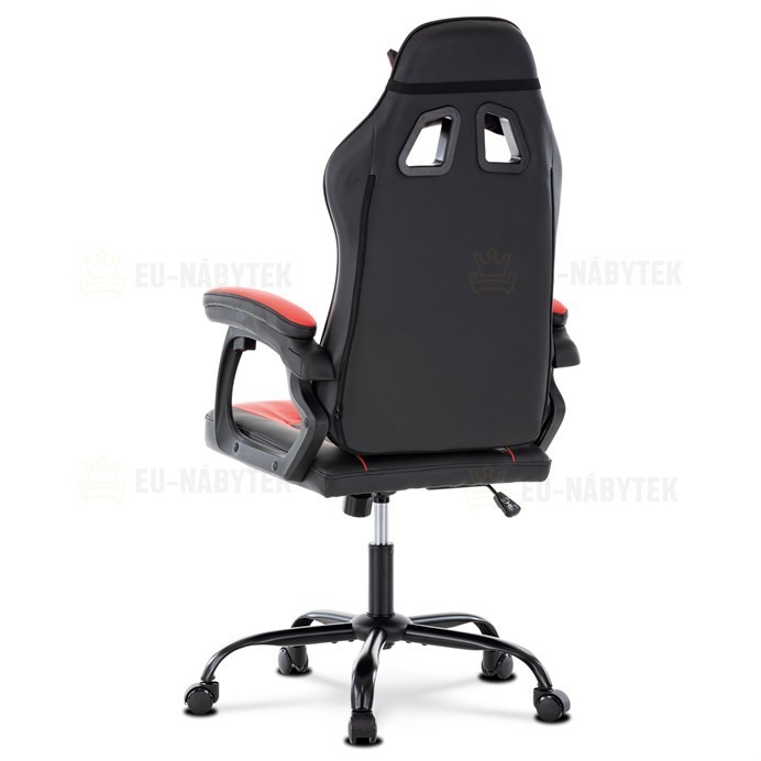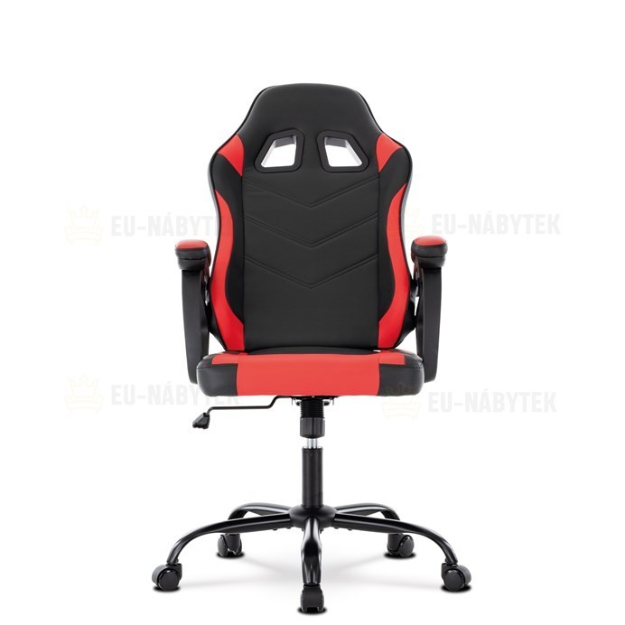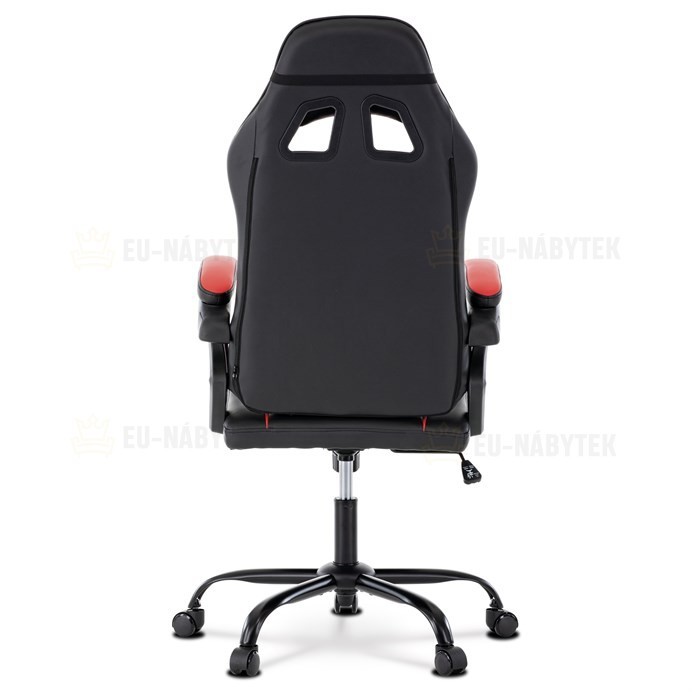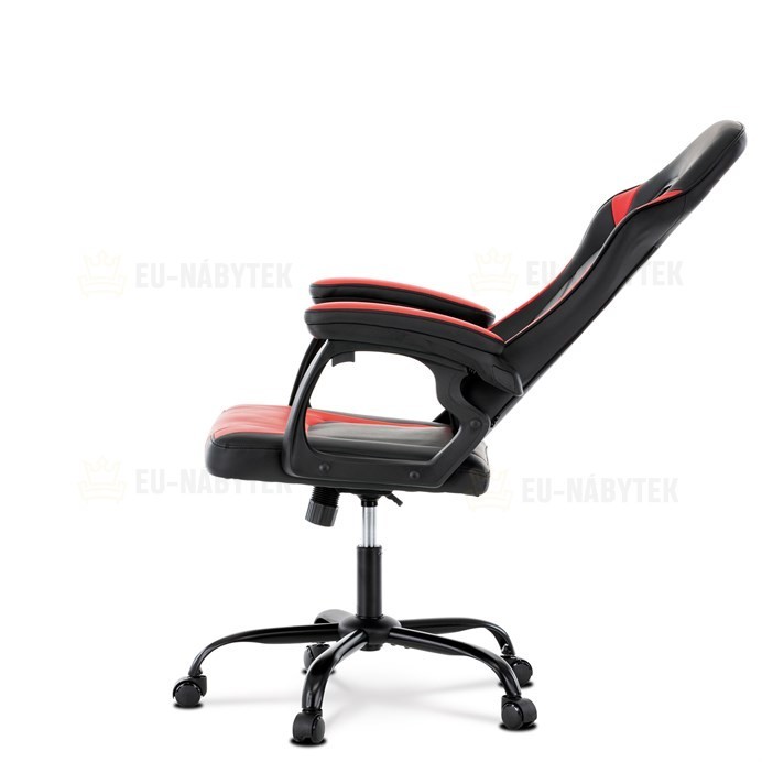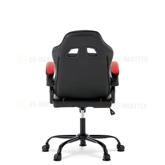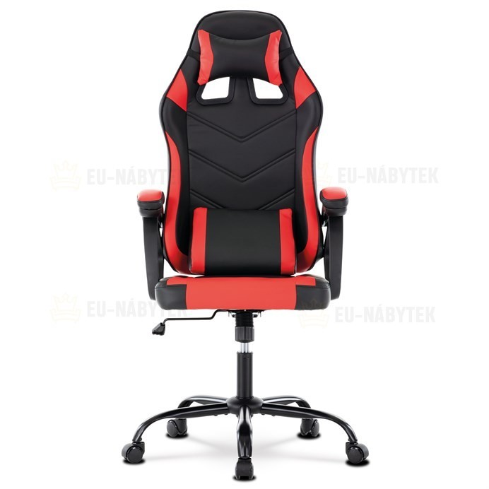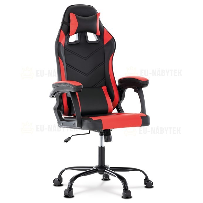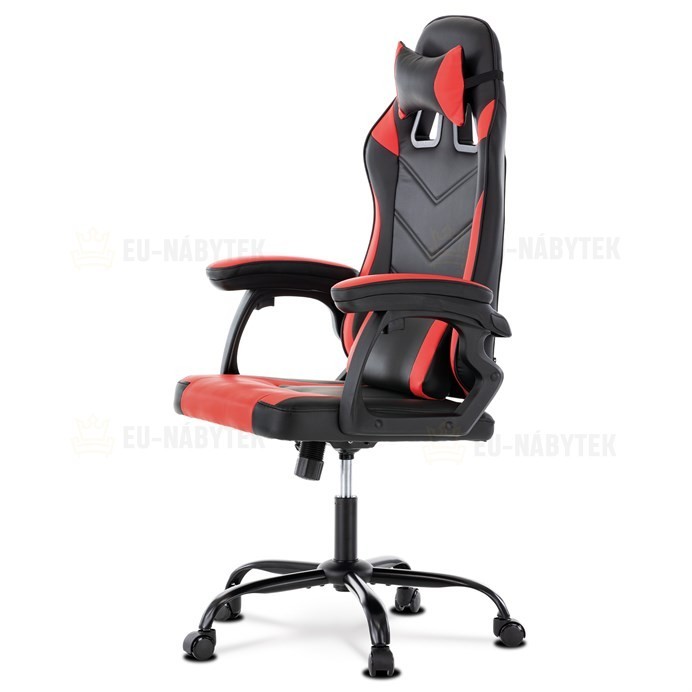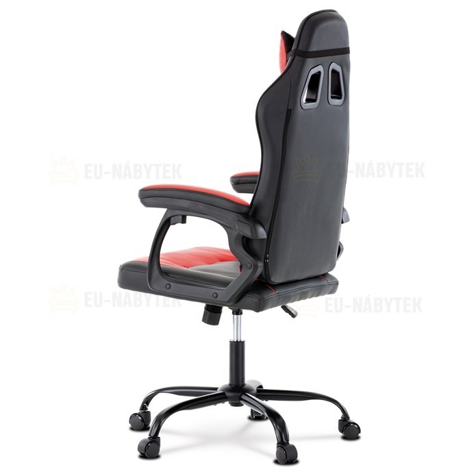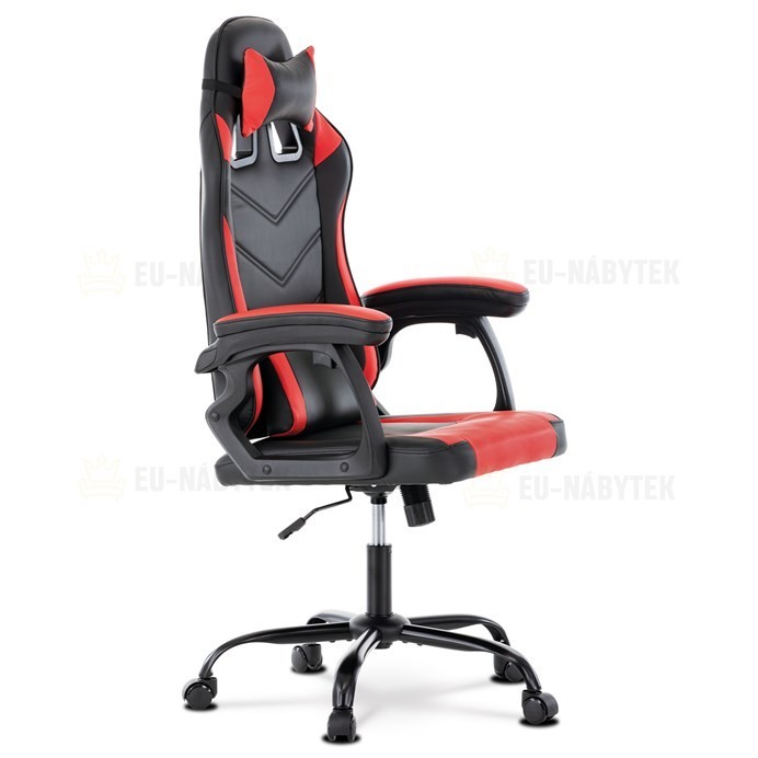 Herní křeslo v designu sedačky závodního vozu a zaoblenými liniemi a novou funkcí opěráku. Potah je kombinace černé, do V prošívané ekokůže a červené ekokůže na okrajích sedáku i opěráku a odnímatelných polštářcích. Polstrování je z kvalitní PU pěny. Židle je vybavena houpacím mechanismem s…