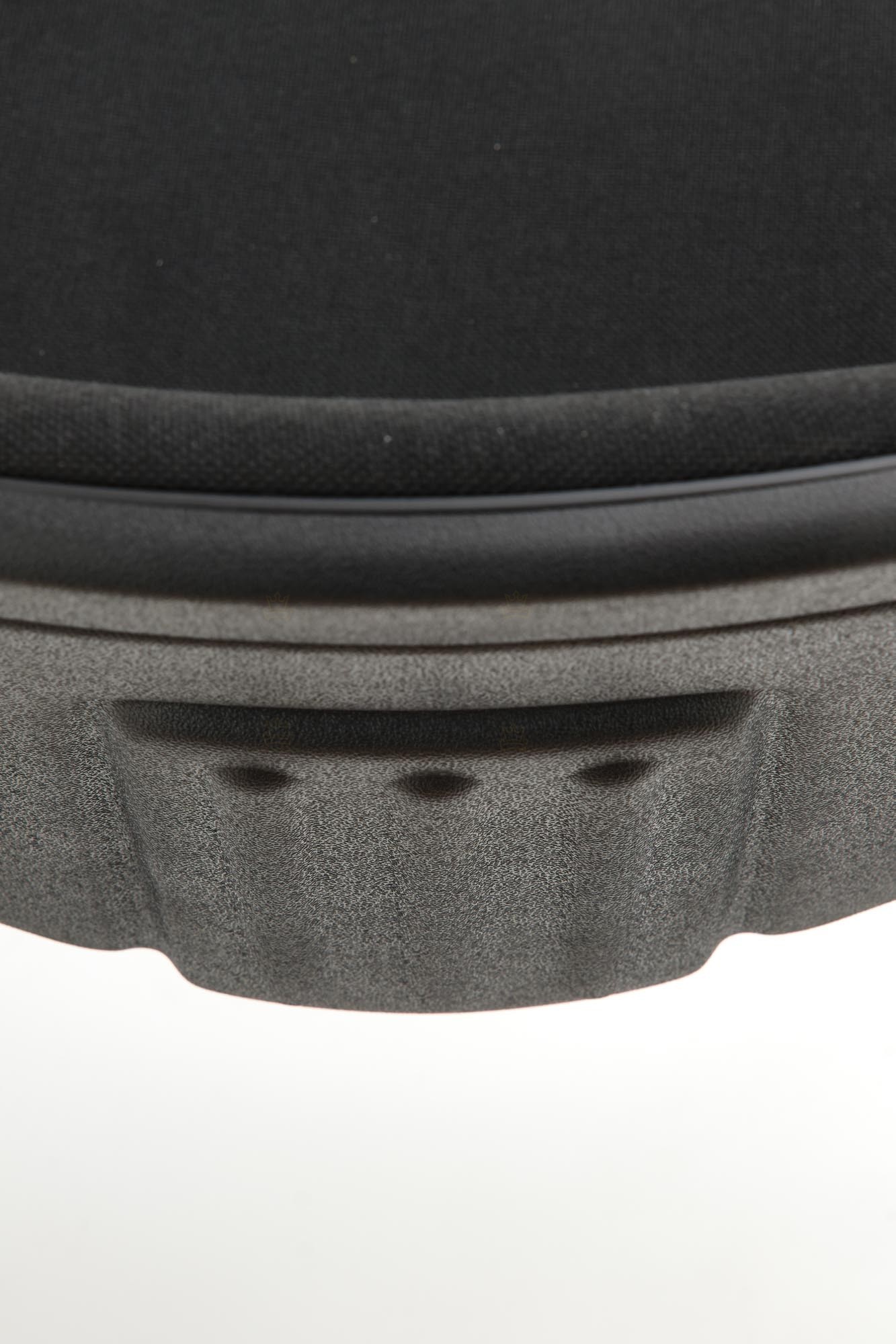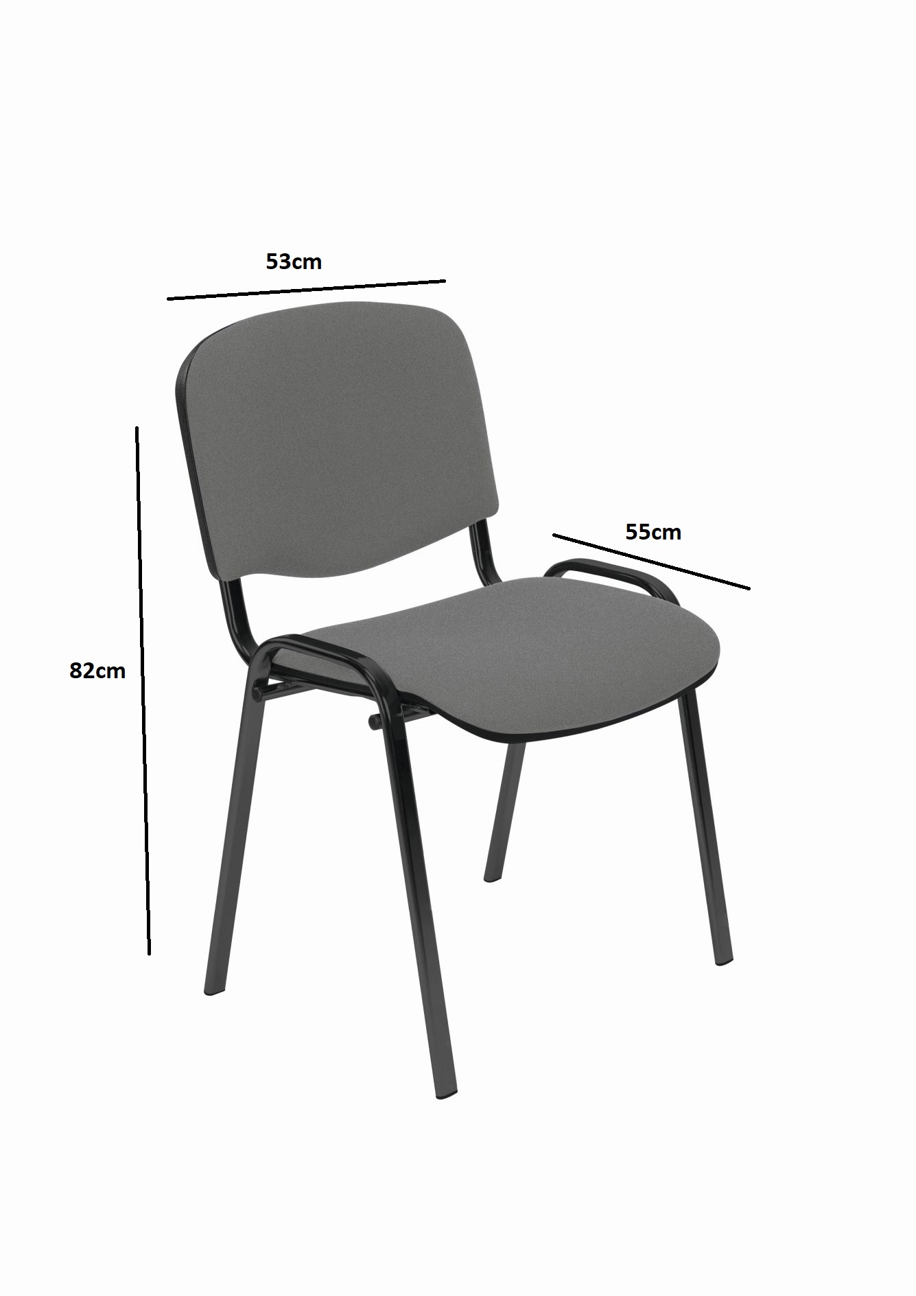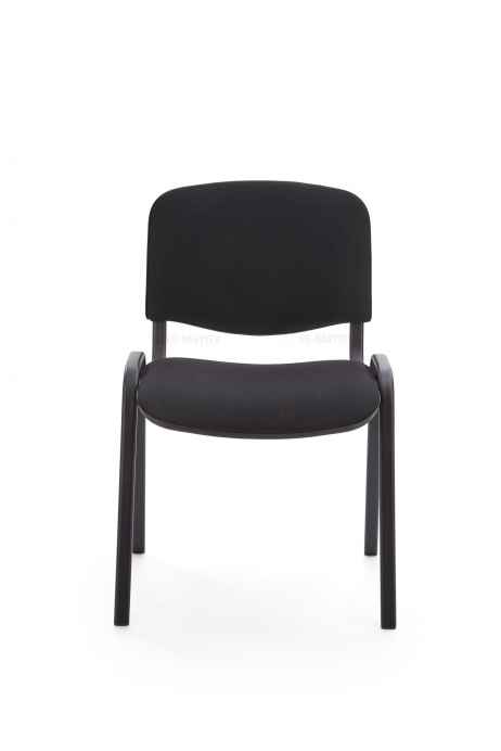 Kancelářská židle v černém provedení s černými kovovými nožkami. Tento typ židle je stohovatelný pro lepší uskladnění. Rozměry jsou 53/55/82 cm.