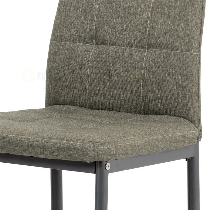 Jídelní židle v industriálním stylu a minimalistickém designu. Je potažena středně hrubou lanýžovou látkou s výrazným čtvercovým prošitím s čalounickými vtahy sedáku i opěráku. Polstrování je z kvalitní PU pěny. Čtyřnohá podnož je kovová, s povrchovou úpravou antracitovou matnou práškovou barvou.…
