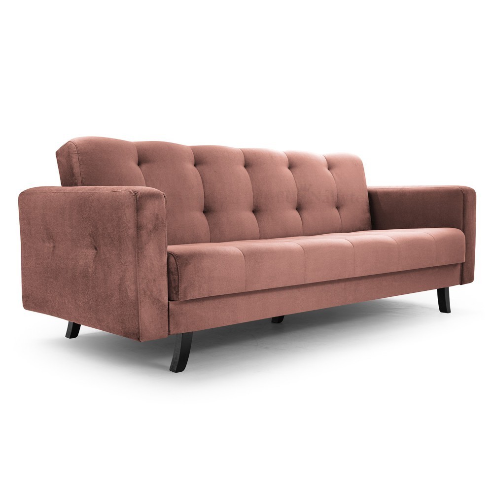 Pohodlná rozkládací pohovka LINIA je ideálním řešením pro obývací pokoj, dětský pokojík nebo teenegery jen tak na lenošení. Pohovka má funkci spaní a úložného prostoru. Výplň je tvořena z vysokoelastické PUR pěny T30 a bonellových pružin. Díky tomuto je zaručen vysoký komfort pohodlí. Pohovka je celočalouněná a je tedy vhodná do prostoru. Moderní design doplňují dřevené nožky v černém provedení. Rozměry jsou 227x93x90cm, plocha na spaní je o rozměru 118x195cm. Čalouněná je kvalitní látkou Kronos 29. V nabídce i v jiném barevném provedení.