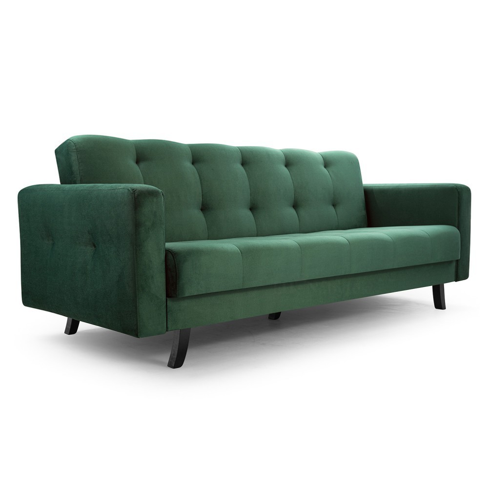 Pohodlná rozkládací pohovka LINIA je ideálním řešením pro obývací pokoj, dětský pokojík nebo teenegery jen tak na lenošení. Pohovka má funkci spaní a úložného prostoru. Výplň je tvořena z vysokoelastické PUR pěny T30 a bonellových pružin. Díky tomuto je zaručen vysoký komfort pohodlí. Pohovka je celočalouněná a je tedy vhodná do prostoru. Moderní design doplňují dřevené nožky v černém provedení. Rozměry jsou 227x93x90cm, plocha na spaní je o rozměru 118x195cm. Čalouněná je kvalitní látkou Kronos 19. V nabídce i v jiném barevném provedení.