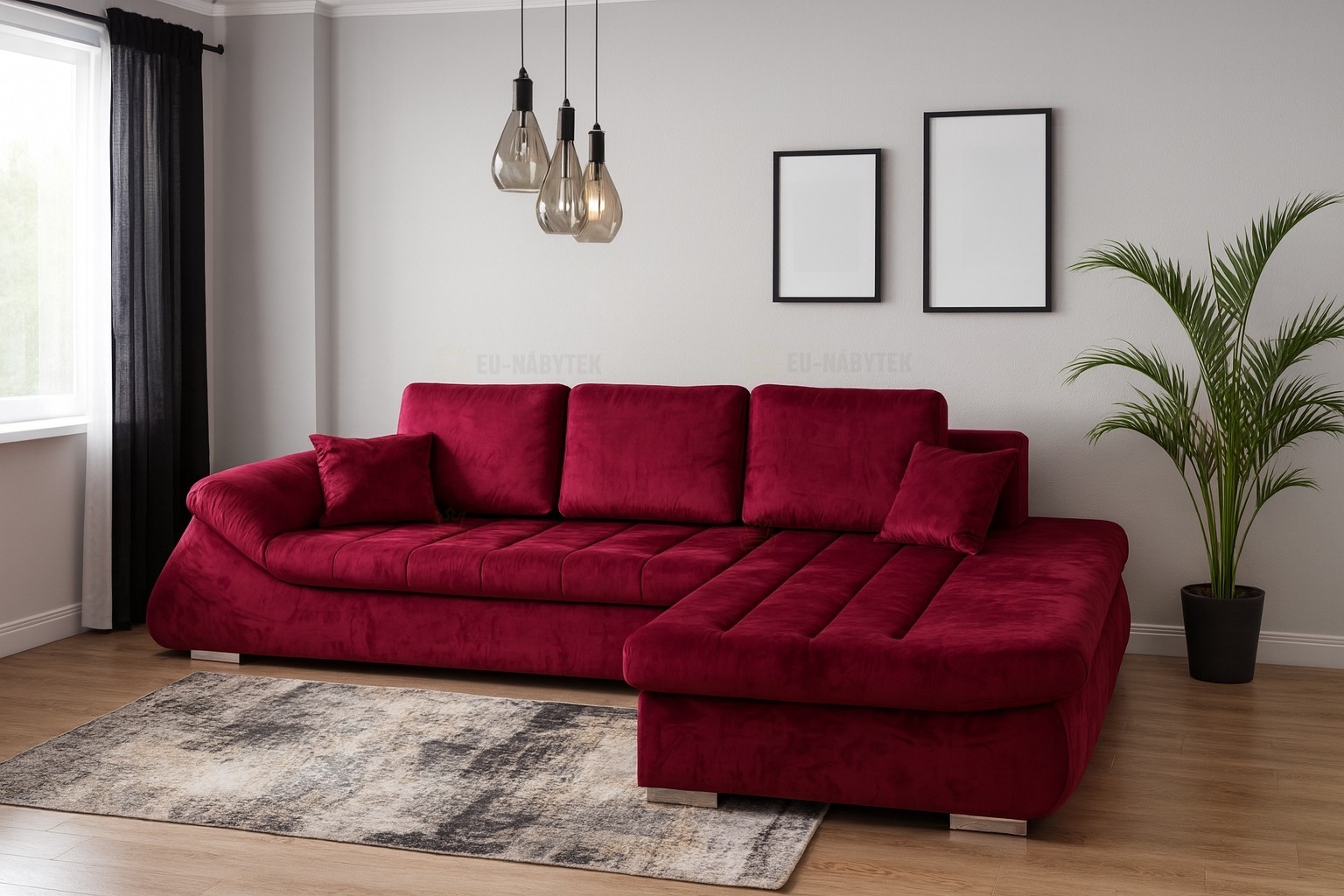 Moderní sedačka Casia, která nadchne především zákazníky, kteří ocení velký prostor pro odpočinek a komfortní posezení. Sedačka je vyrobena z kvalitních materiálů a zajístí tak dlouhou životnost. Disponuje úložným prostorem a rozkladem pro příležitostné spaní. Po rozložení vzniká plocha na spaní o rozměru 205x130cm. Celkové rozměry sedačky jsou 295x180/206x73/84cm. Velmi zajímavé provedení boku sedačky, který může sloužit také jako záhlavník pro dokonalý odpočinek. Sedací plocha je vyplněna kvalitní HR pěnou a pružinami Faliste. Je celočalouněná, vhodná do prostoru. Nožičky jsou chromované. Čalouněná je v kombinaci látek Orinoco 85 a Madryt 1100.