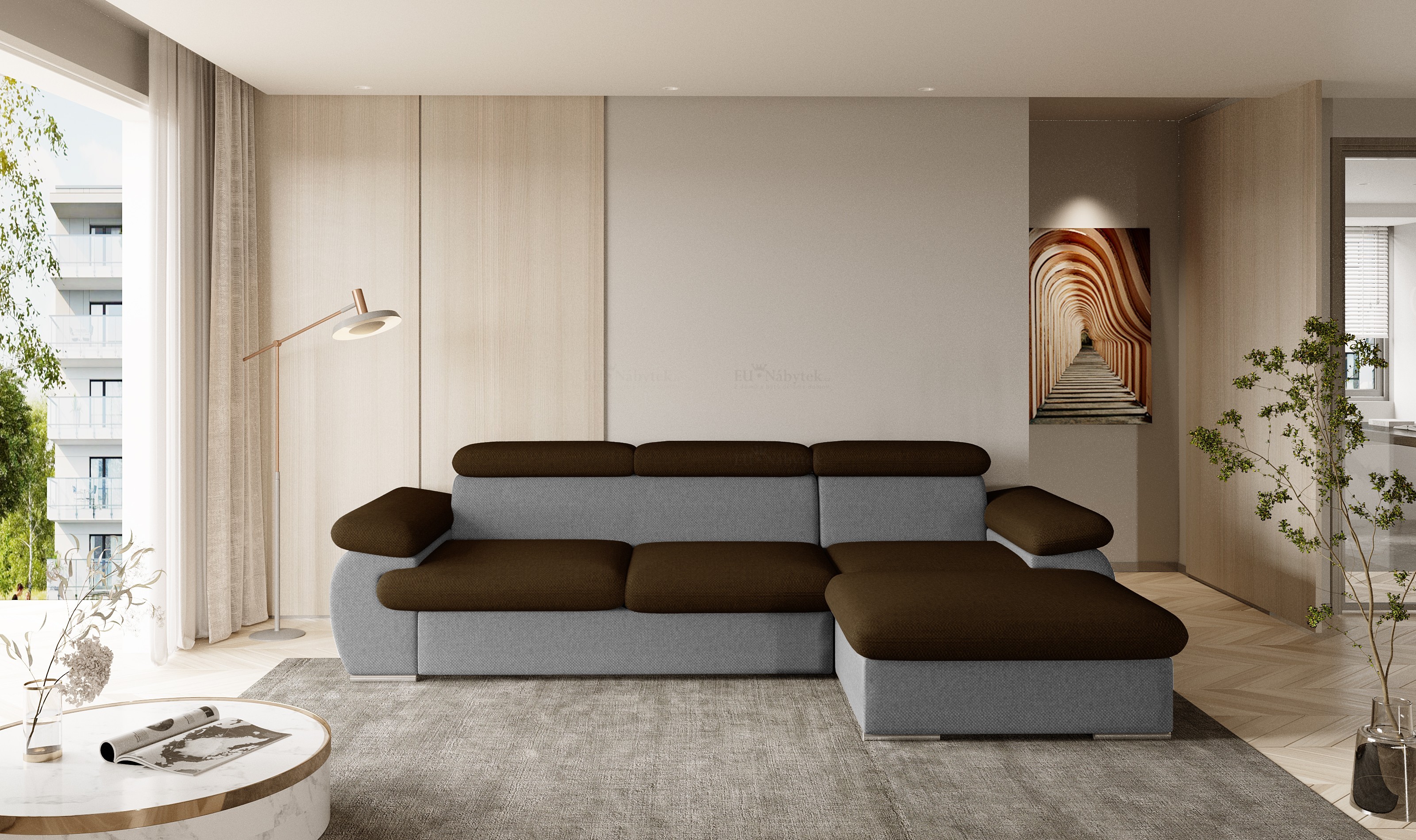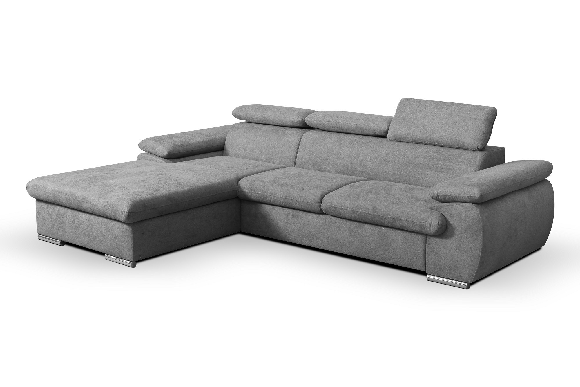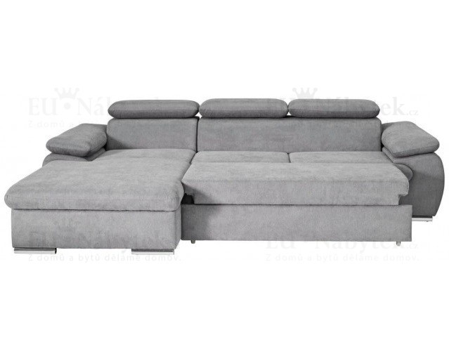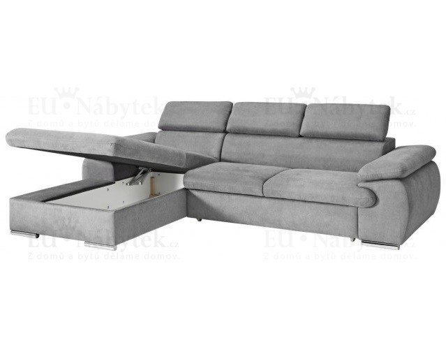 Rozkládací rohová sedačka GRANBY obsahuje úložný prostor v bočním otomanu a po rozložení také prostor pro příležitostné spaní. Po rozložení vznikne spací plocha o rozměru 210 x 124 cm. Rozklad je snadný díky pomoci automatu. Pohodlné sezení zaručují vlnovcové pružiny Faliste spolu s PUR pěnou. Výška sedu je 43 cm. Nožky jsou z kovu. Výhodou sedačky jsou polohovatelné záhlavníky, díky kterým si dopřejete ten nejlepší odpočinek. Barevné provedení je kvalitní látka Asti 13.