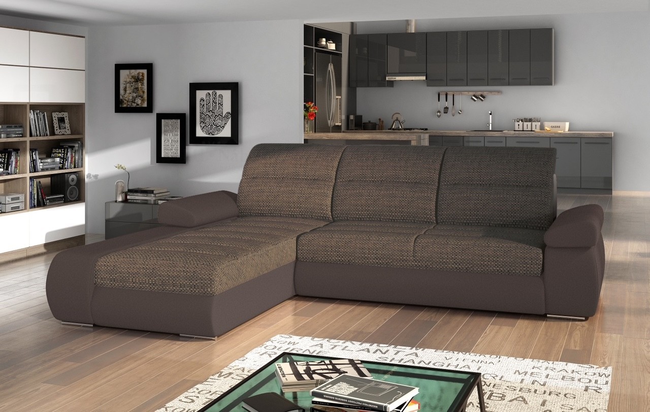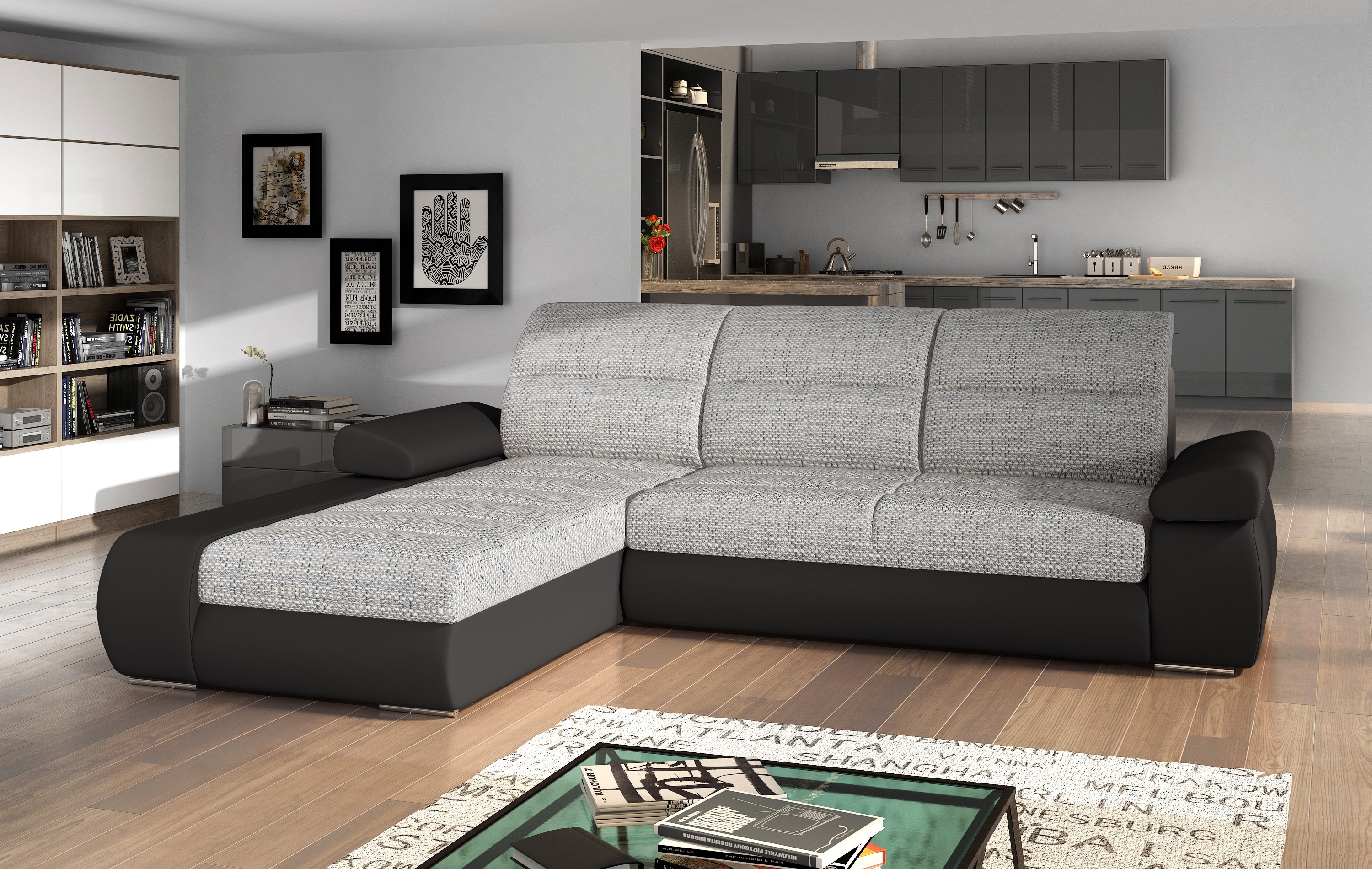 Rozkládací rohová sedačka Aladin, která nadchne i ty nejnáročnější zákazníky. Sedačka jednoduchého ale zároveň moderního vzhledu. Disponuje automatickým rozkladem pro přespání o rozměru 130 x 200 cm. Úložný prostor naleznete v boční části otomanu. Velkou výhodou jsou polohovatelné nastavitelné područky. Nožičky jsou kovové. Pohodlné sezení zaručují kvalitní pružiny a PUR pěna. Kvalitní prošití včetně vysoce kvalitní látky Berlin 01 a černá ekokůže.