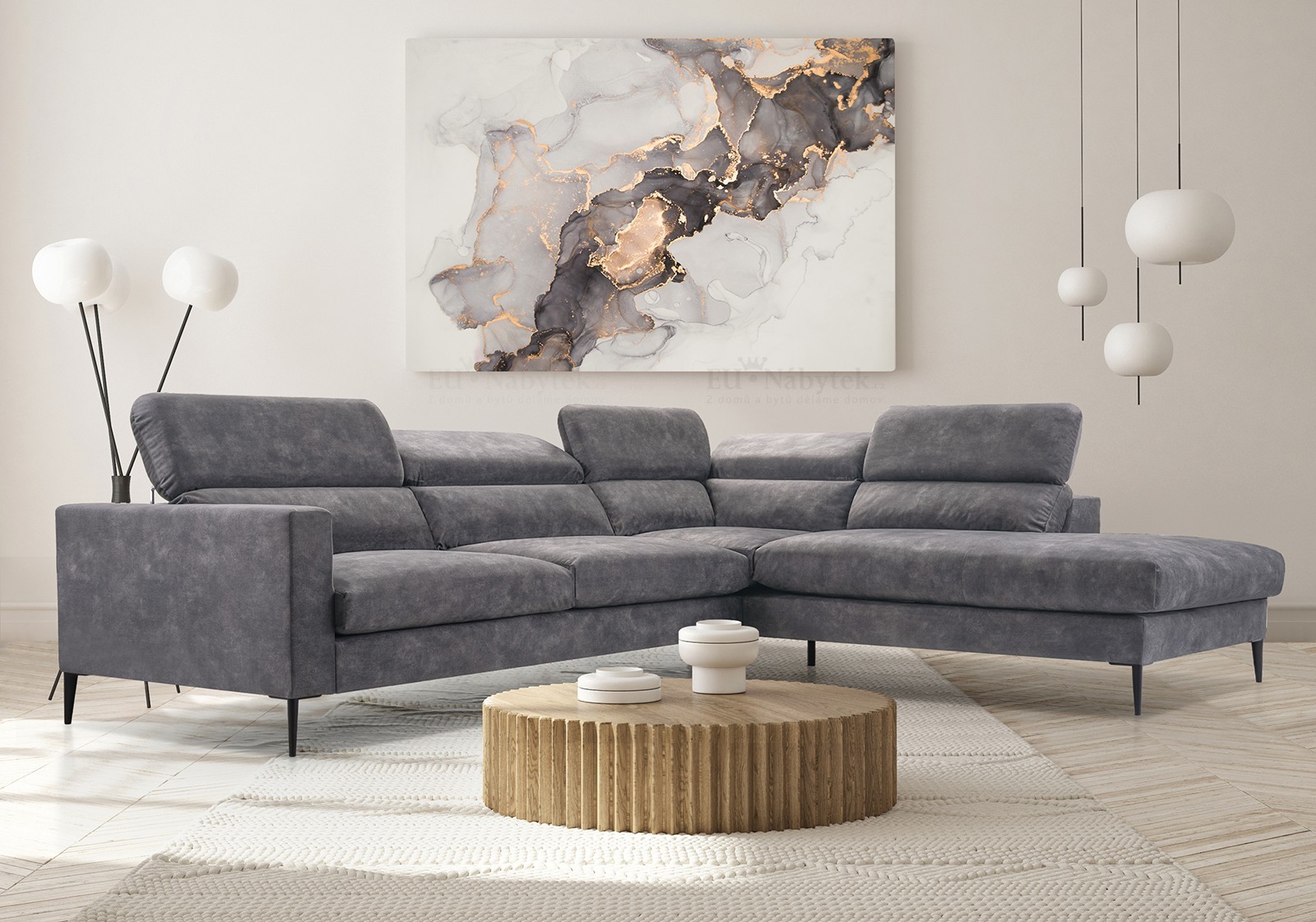 Praktická moderní rohová sedačka JEZZIMA, která nadchne i ty nejnáročnější zákazníky. Pohodlné sezení zaručují pružiny faliste a vysoce flexibilní kvalitní PUR pěna T35. Sedačka disponuje polohovatelnými záhlavníky, díky kterým si dopřejete ten nejpohodlnější odpočinek. Sedačka je celočalouněná. Lze ji tedy umístit do prostoru. Celkové rozměry sedačky jsou 300x250x94cm. Výška sedu je 47cm. Čalouněná je látkou Palladium 16. Výrobce ji nabízí hned v několika barevných variantách. Vyberte si tak tu, která vám bude nejlépe pasovat do vašeho interiéru.