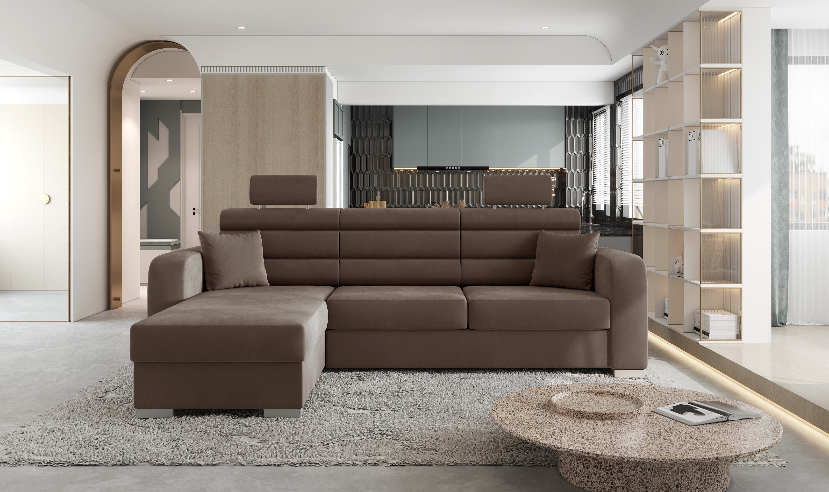 Moderní sedačka Monika je ideální pro ty, kteří ocení komfort a pohodlí. Tkanina vysoké kvality, masivní pevná kostra, pružinové jádro faliste s kvalitní PUR pěnou zaručují komfortní posezení. Plocha po rozložení 128x200cm. Sedací souprava má také praktický úložný prostor pro uložení lůžkovin. Velkou předností této sedačky jsou dva praktické záhlavníky, díky kterým si dopřejete pohodlný odpočinek. Čalouněná je látkou Uttario velvet 2971. V nabídce i v jiném barevném provedení.