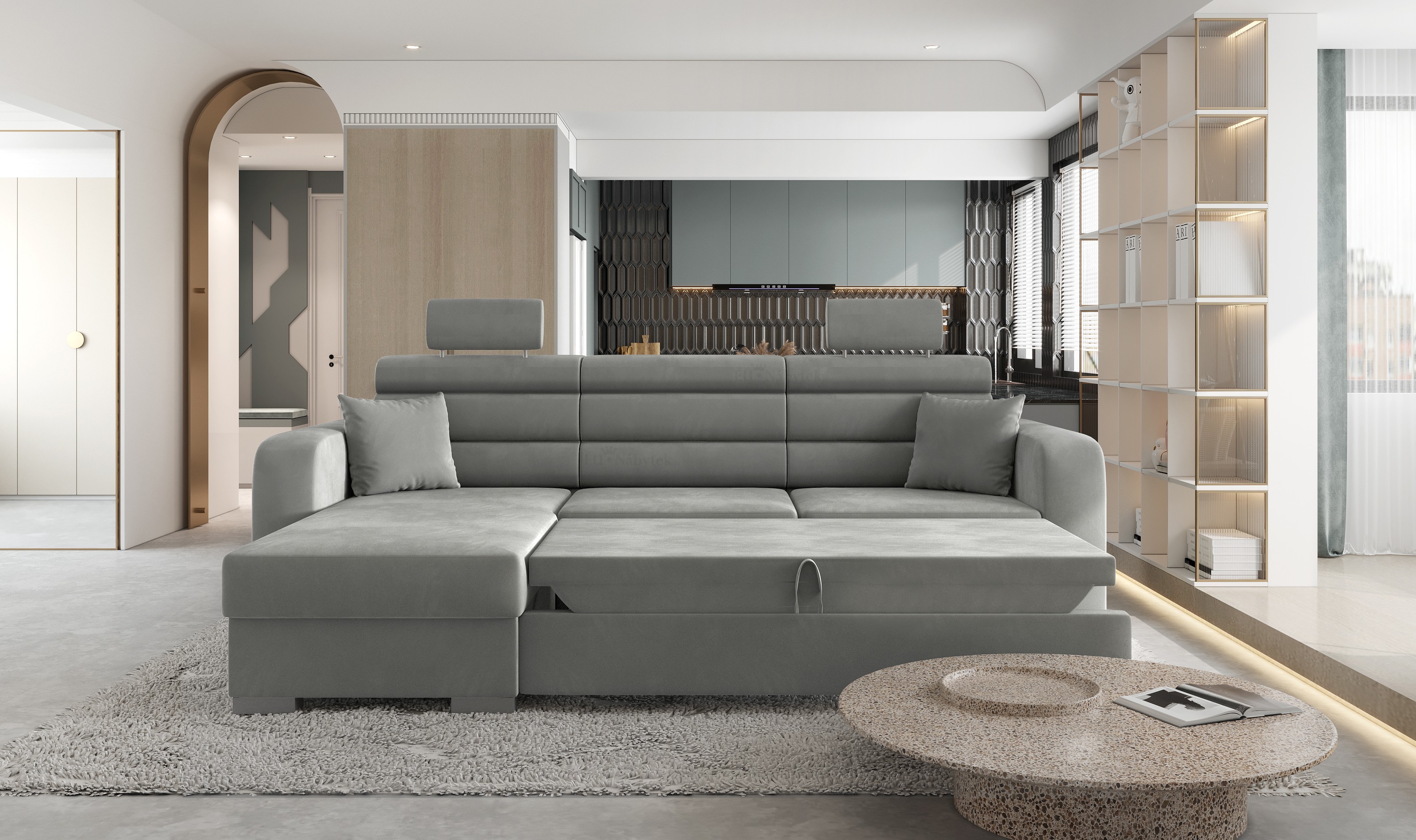 Moderní sedačka Monika je ideální pro ty, kteří ocení komfort a pohodlí. Tkanina vysoké kvality, masivní pevná kostra, pružinové jádro faliste s kvalitní PUR pěnou zaručují komfortní posezení. Plocha po rozložení 128x200cm. Sedací souprava má také praktický úložný prostor pro uložení lůžkovin. Velkou předností této sedačky jsou dva praktické záhlavníky, díky kterým si dopřejete pohodlný odpočinek. Čalouněná je látkou Victoria 39. V nabídce i v jiném barevném provedení.