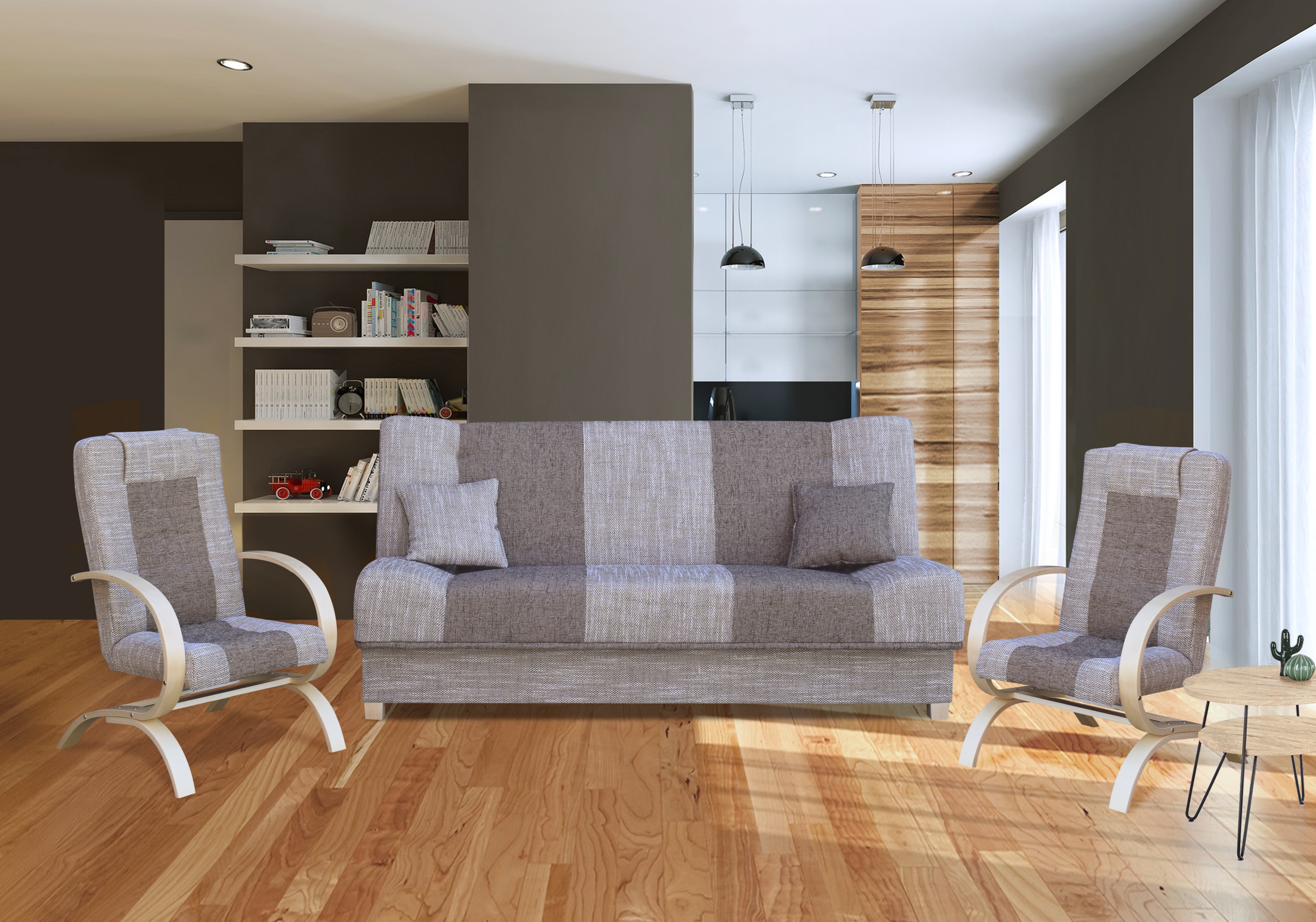 Sedací souprava Malibu 3+1+1, která je velmi praktická a stylová, vhodná nejen do obývacího pokoje v moderním designu. Poskytuje vysoký komfort sezení. Výrobce použil nejkvalitnější materiál včetně dřevené konstrukce. Pohovka vám nabízí možnost přespání včetně úložného prostoru. Rozměry spací plochy jsou 117x194cm. Celkové rozměry pohovky jsou 194x117x86cm. Rozměry křesel jsou 64x75x104cm. Čalouněná je v kombinaci barev Lobox 01 a Sawana 16. Na stránce naleznete i další barevné varianty.