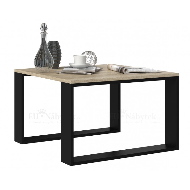 Moderní konferenční stolek v loftovém stylu, který perfektně zapadne především od obývacího pokoje. Vyroben je z dvojité laminované desky se zvýšenou tvrdostí, díky čemuž je povrch nábytku odolnější vůči poškrábání. Stolek nadchne především svým zajímavým tvarem nohou. Vyroben je z kvalitního lamina (i nohy). Jeho hrany jsou zakončeny PVC páskou vyznačují se vysokou mechanickou a chemickou odolností. Rozměry jsou (šxvxh) 67x40x67cm. Barevné provedení dub sonoma a černá. V nabídce i jiné barevné varianty.
