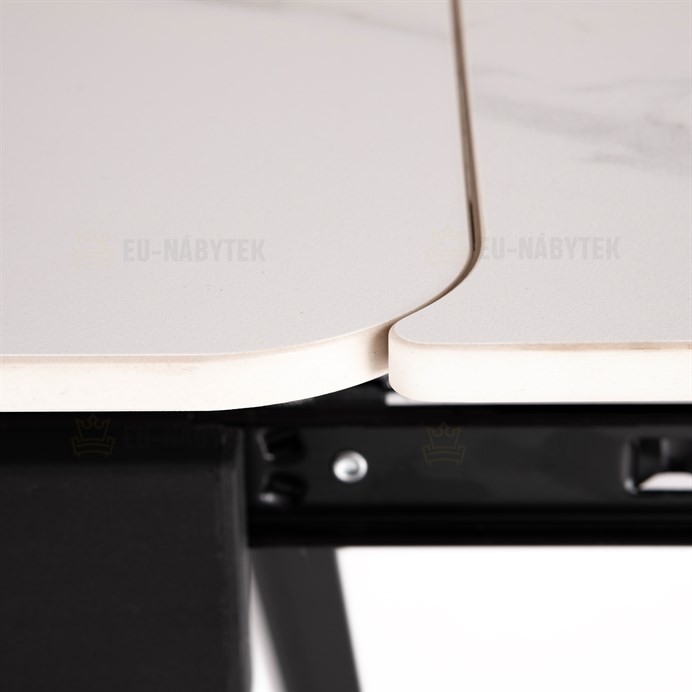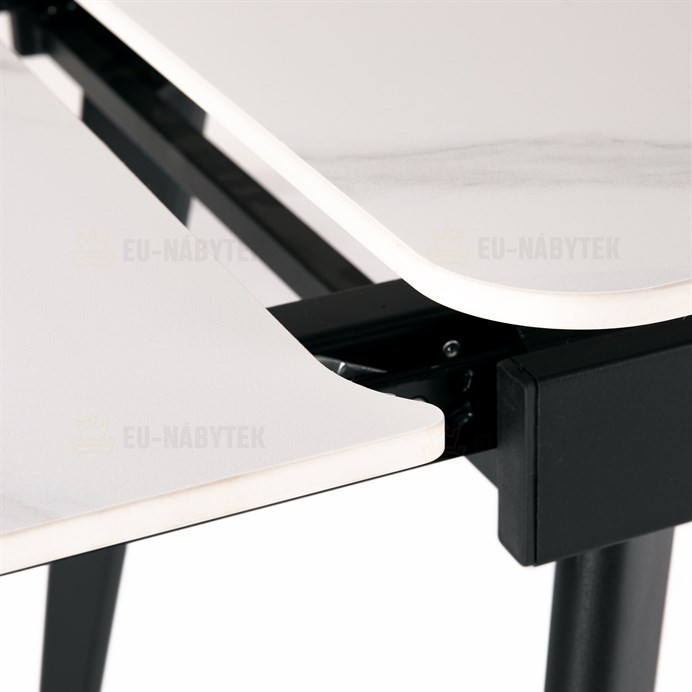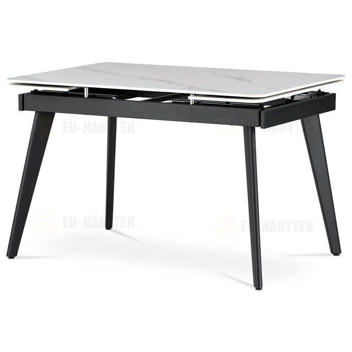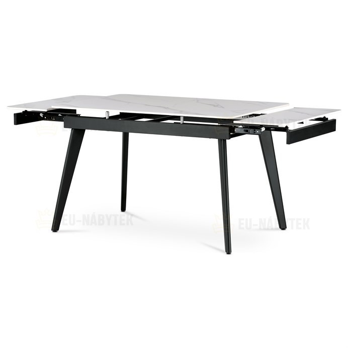 Designový jídelní rozkládací stůl o rozměru 120 + 30 + 30 x 80 cm v industriálním minimalistickém stylu. Vrchní stolová deska je tvrzené keramiky tl. 12 mm v matném dekoru "Italský sněhobílý mramor". Konstrukce stolu i nohy jsou celokovové s nástřikem práškového vypalovacího laku v matném černém…