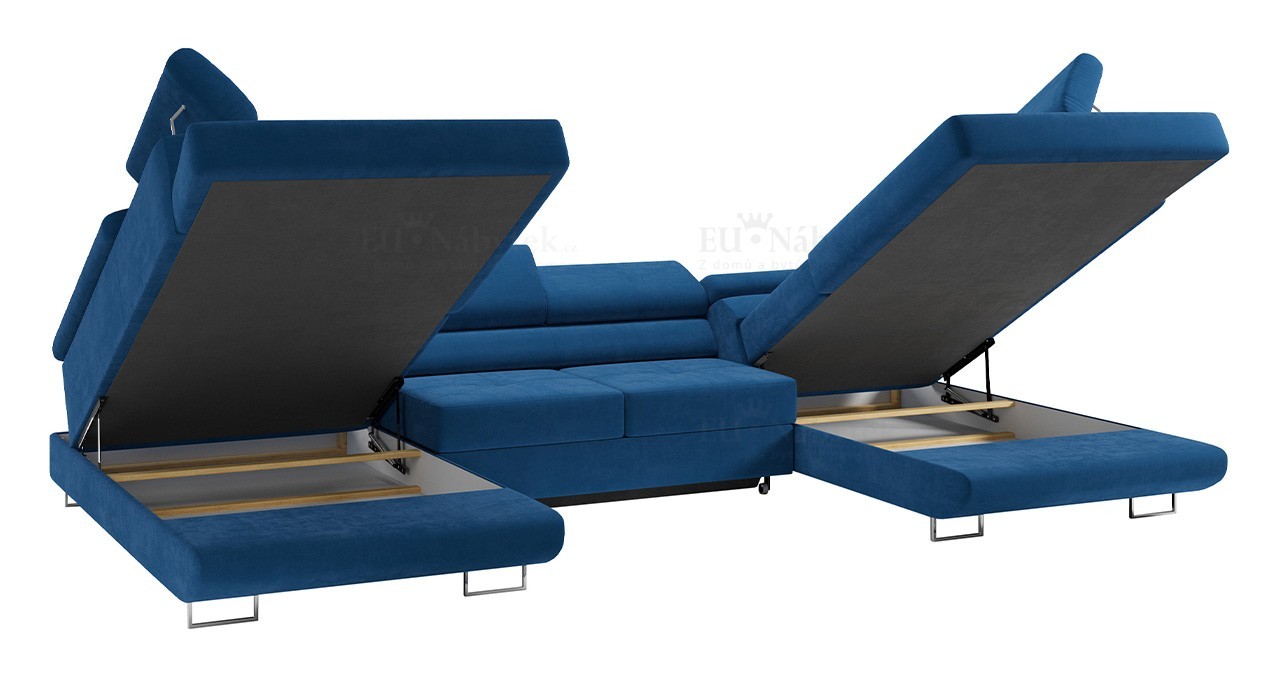 Moderní prostorná sedací souprava TARGEN je ideální pro ty, kteří požadují komfort a vysoké pohodlí. Styl jejího provedení je velice nadčasový a svými liniemi zapadne do každého interiéru. Na sedáky jsou použity pružiny typu Faliste a kvalitní vysokoelastická pěna T30. Velkou výhodou jsou polohovatelné záhlavníky, díky kterým si užijete dokonalý odpočinek. Díky čalouněným zádům lze sedací soupravu umístit i volně do prostoru. Samozřejmostí jsou dva úložné prostory, které se nachází v bočních otomanech, a rozklad pro příležitostné přespání. Designovým prvkem jsou chromované nožky o výšce 9cm. Čalounění látka Kronos 6. Lze si vybrat z velké škály barevných provedení, které naleznete na našich stránkách.