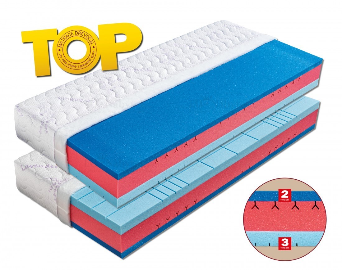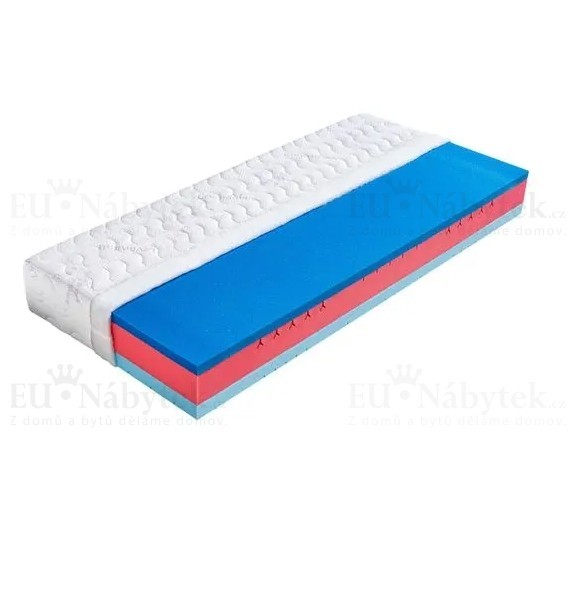 Matrace, jejíž jádro tvoří 12 cm vysoká vrstva speciální červené antibakteriální pěny (32 kg/m³) značky Sanitized, která poskytuje trvalou a účinnou ochranu proti bakteriím, roztočům a plísním. Tyto vlastnosti ocení nejen alergici, ale i ti, kteří kladou důraz na vysokou hygienu lůžka. Je navržena se zářezy ve tvaru „Y“, které napomáhají odlehčení v místech největšího zatížení - oblast ramen. Vrchní stranu matrace změkčuje oblíbená viscoelastická pěna (50 kg/m³). Je charakteristická efektem pomalého vracení se do původní polohy. Pouhým přetočením matrace získáte pevnější stranu se vzdušnou a elastickou studenou HR pěnou (40 kg/m³), která má antidekubitní prořezy v pěti zónách. Dokonale se přizpůsobí ležícímu tělu a zamezuje vzniku proleženin. Matrace je vhodná na všechny typy roštů, včetně motorových. Celková výška matrace cca 23 cm.