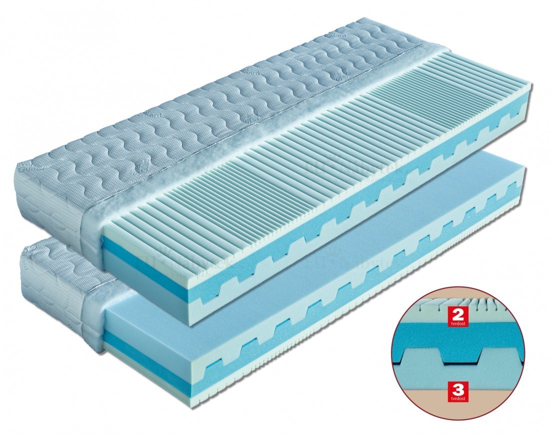 Matrace je vhodná především pro děti a mládež. Jádroje tvořeno z HR pěny. Na horní straně je pěna MediFoam která zabazpečije perfektní odvětrávání díky speciálním výřezům. Tyto výřezy jsou tvarovány do zón podle tvaru těla. Tato strana je označovaná jako středně tvrdá. Tvrdší strana je složena z…