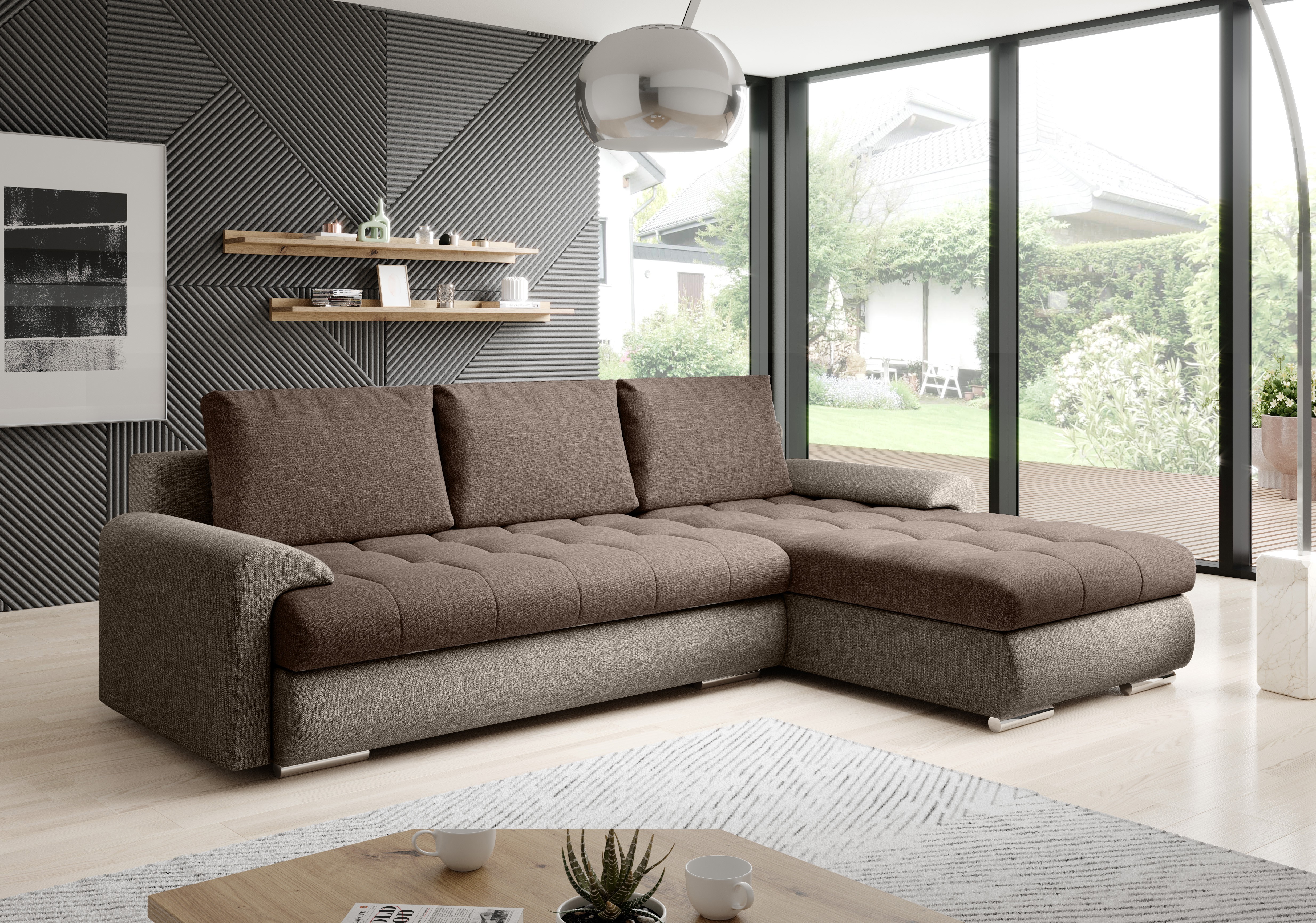 Sedací souprava Tomino je ideální pro ty, kteří ocení komfort a pohodlí. Tkanina vysoké kvality, masivní pevná kostra, kvalitní pružiny faliste spolu s PUR pěnou zaručují komfortní posezení. Disponuje automatickým rozkladem pro příležitostné přespání a úložným prostorem pro uložení lůžkovin, který se nachází v prostřední části po rozložení. Sedačka je celočalouněná, je tedy vhodná do prostoru. Výška sezení je 36 cm. Je čalouněná látkou Sawana 61 a Sawana 05. Výrobce ji nabízí hned v několika barevných variantách. Vyberte si tak tu, která Vám nejvíce vyhovuje. Sedačka je univerzální. Nutnost montáže dle vámi zvoleného rohu.
