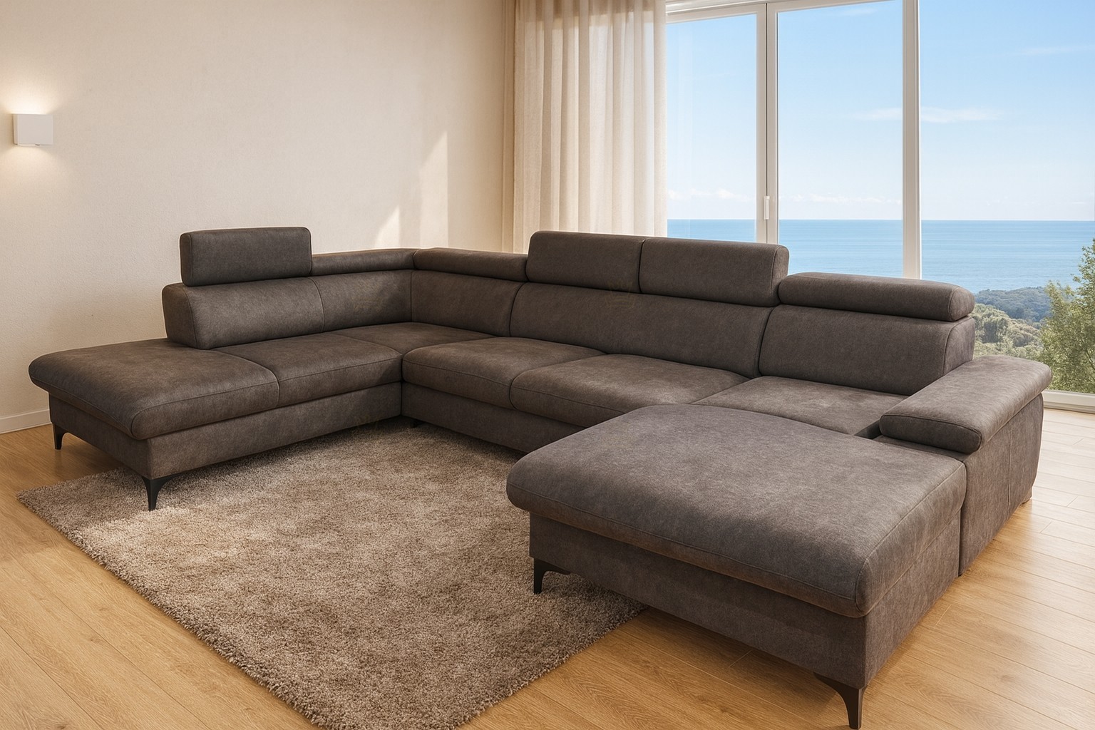 Moderní sedací souprava Apolo je ideální pro ty, kteří požadují komfort a vysoké pohodlí. Styl jejího provedení je velice nadčasový a svými liniemi zapadne do každého interiéru. Na sedáky jsou použity kvalitní pružiny typu Faliste spolu s vysokoelastickou PUR pěnou. Velkou výhodou jsou polohovatelné záhlavníky s 6-ti stupňovou regulací a područky. Samozřejmostí je rozklad, díky kterému získáte plochu pro příležitostné spaní o rozměru 256x124cm. Praktický úložný prostor se nachází v bočním otomanu. Čalouněná je kvalitní látkou Solo 263. V nabídce i v jiných barevných provedeních. Na hlavním obrázku je pravý roh!