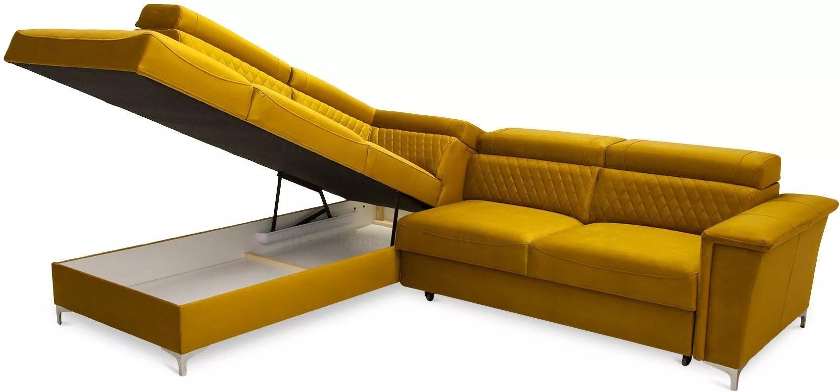 Luxusní rohová sedačka GARET, která nadchne i ty nejnáročnější zákazníky. Sedačka má velmi kvalitní prošití, které dodává sedačce jedinečný vzhled. Konstrukce sedačky je z kvalitního materiálu včetně sezení z PUR pěny T30 a pružin Faliste. Velkou výhodou jsou praktické polohovací záhlavníky, díky kterým si dopřejete ten nejpohodlnější odpočinek. Doplněna je moderními stříbrnými kovovými nožičkami. Samozřejmostí je praktický úložný prostor pro úschovu lůžkovin a také automatický rozklad. Po rozložení tak získáte spací plochu o rozměru 203x123cm. Čalouněná je kvalitní látkou Riviera 41. Na stránce naleznete další barevné varianty. Celočalouněná - vhodná do prostoru.