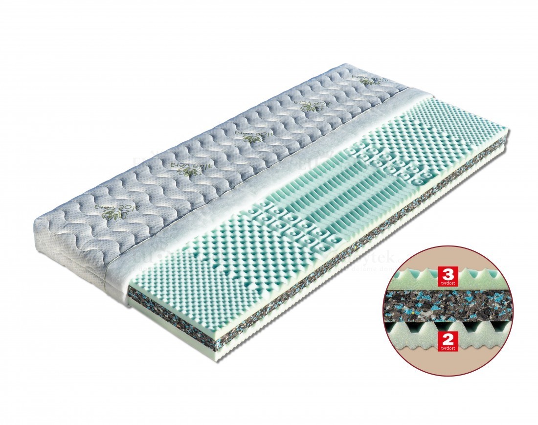 Sendvičová matrace s jádrem z pojeného polyuretanu (PUR RE 80). Nosné vrstvy matrace tvoří pěna MediFoam (32 kg/m³) tvarovaná do masážních nopů a profilovaná vrstva pěny MediFoam (32 kg/m³) zabezpečující provzdušnění matrace. Matrace umožňuje volbu dvou tvrdostí pouhým otočením. Celková výška matrace cca 14 cm.
