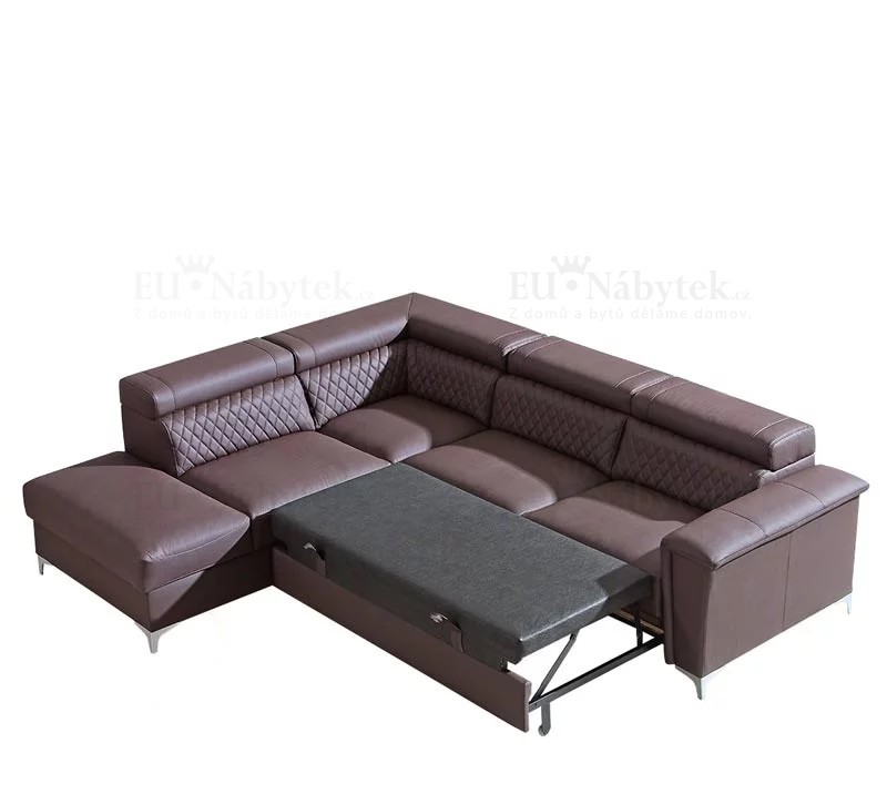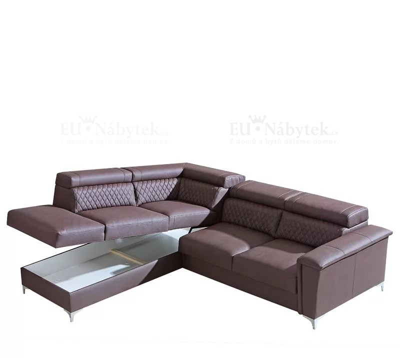 Luxusní rohová sedačka GARET, která nadchne i ty nejnáročnější zákazníky. Sedačka má velmi kvalitní prošití, které dodává sedačce jedinečný vzhled. Konstrukce sedačky je z kvalitního materiálu včetně sezení z PUR pěny T30 a pružin Faliste. Velkou výhodou jsou praktické polohovací záhlavníky, díky kterým si dopřejete ten nejpohodlnější odpočinek. Doplněna je moderními stříbrnými kovovými nožičkami. Samozřejmostí je praktický úložný prostor pro úschovu lůžkovin a také automatický rozklad. Po rozložení tak získáte spací plochu o rozměru 203x123cm. Čalouněná je kvalitní ekokůží Vienna 07. Na stránce naleznete další barevné varianty. Celočalouněná - vhodná do prostoru.