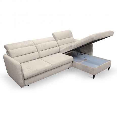 Rozkládací rohová sedačka SAMANTA obsahuje úložný prostor v bočním otomanu a po rozložení také prostor pro příležitostné spaní. Po rozložení vznikne spací plocha o rozměru 212 x 125 cm. Rozklad je snadný díky pomoci automatu. Pohodlné sezení zaručují vlnovcové pružiny Faliste spolu s PUR pěnou. Výška sedu je 42 cm. Moderním prvkem jsou dřevěné nožky. Výhodou sedačky jsou polohovatelné záhlavníky, díky kterým si dopřejete ten nejlepší odpočinek. Barevné provedení je kvalitní látka Vogue 10.