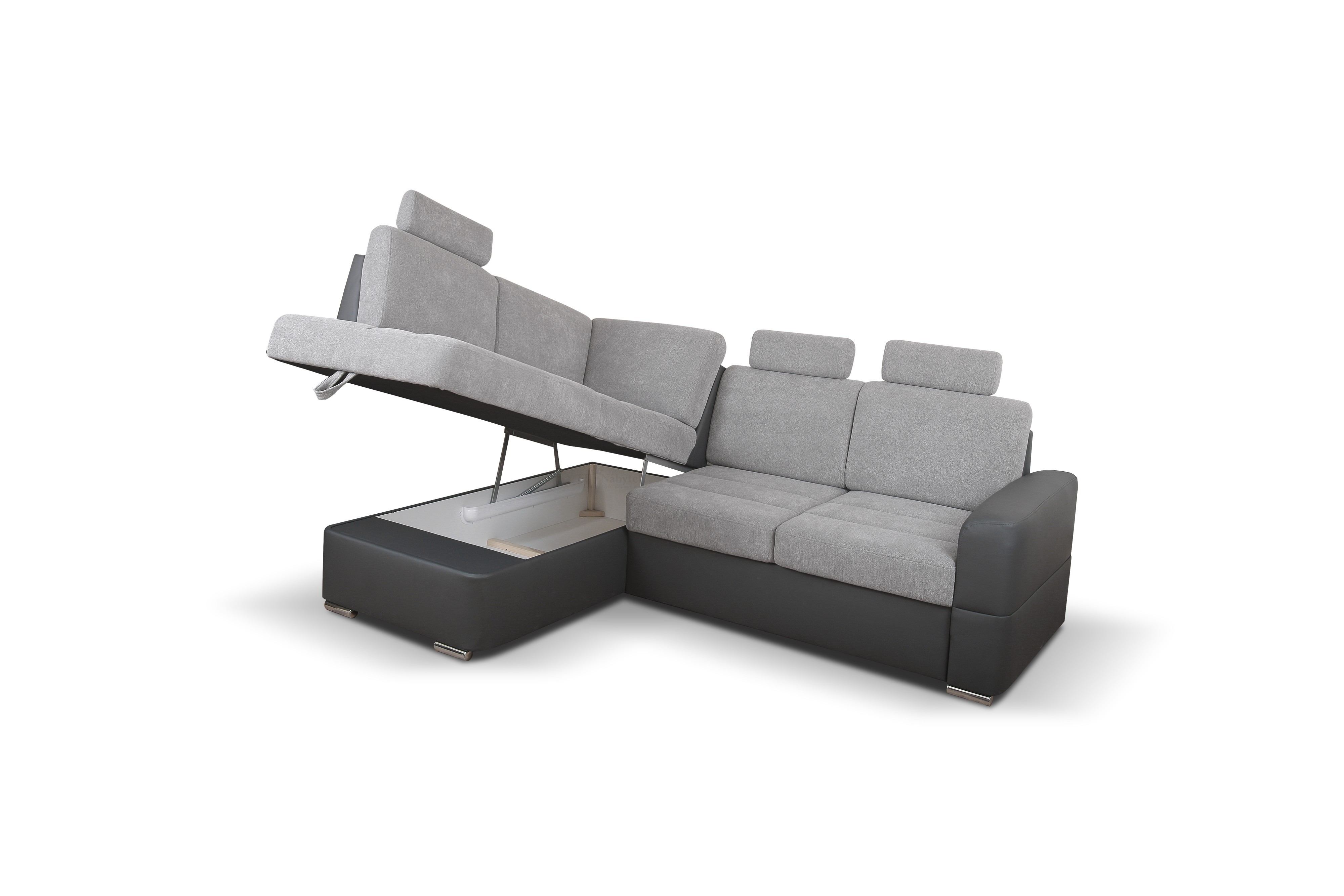 Moderní sedačka Bombardino je ideální pro ty, kteří ocení komfort a pohodlí. Tkanina vysoké kvality, masivní pevná kostra, pružinové jádro Faliste s kvalitní PUR pěnou zaručují komfortní posezení. Plocha po rozložení 125x190cm. Sedací souprava má také praktický úložný prostor pro uložení lůžkovin. Velkou předností této sedačky jsou tři praktické záhlavníky, díky kterým si dopřejete pohodlný odpočinek. Čalouněná je látkou Primo 88 a ekokůže Madryt 1100. Celočalouněná, vhodná do prostoru.