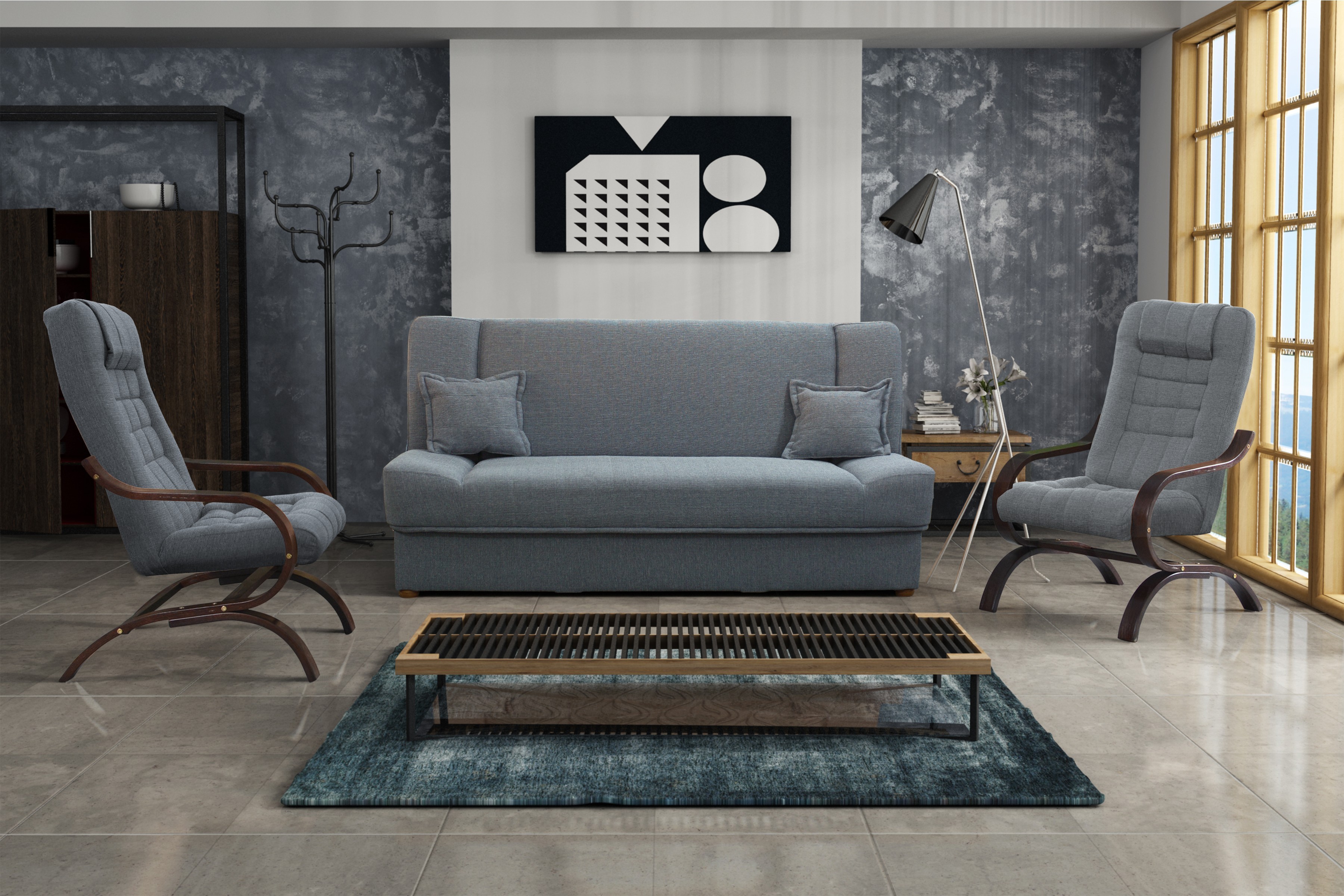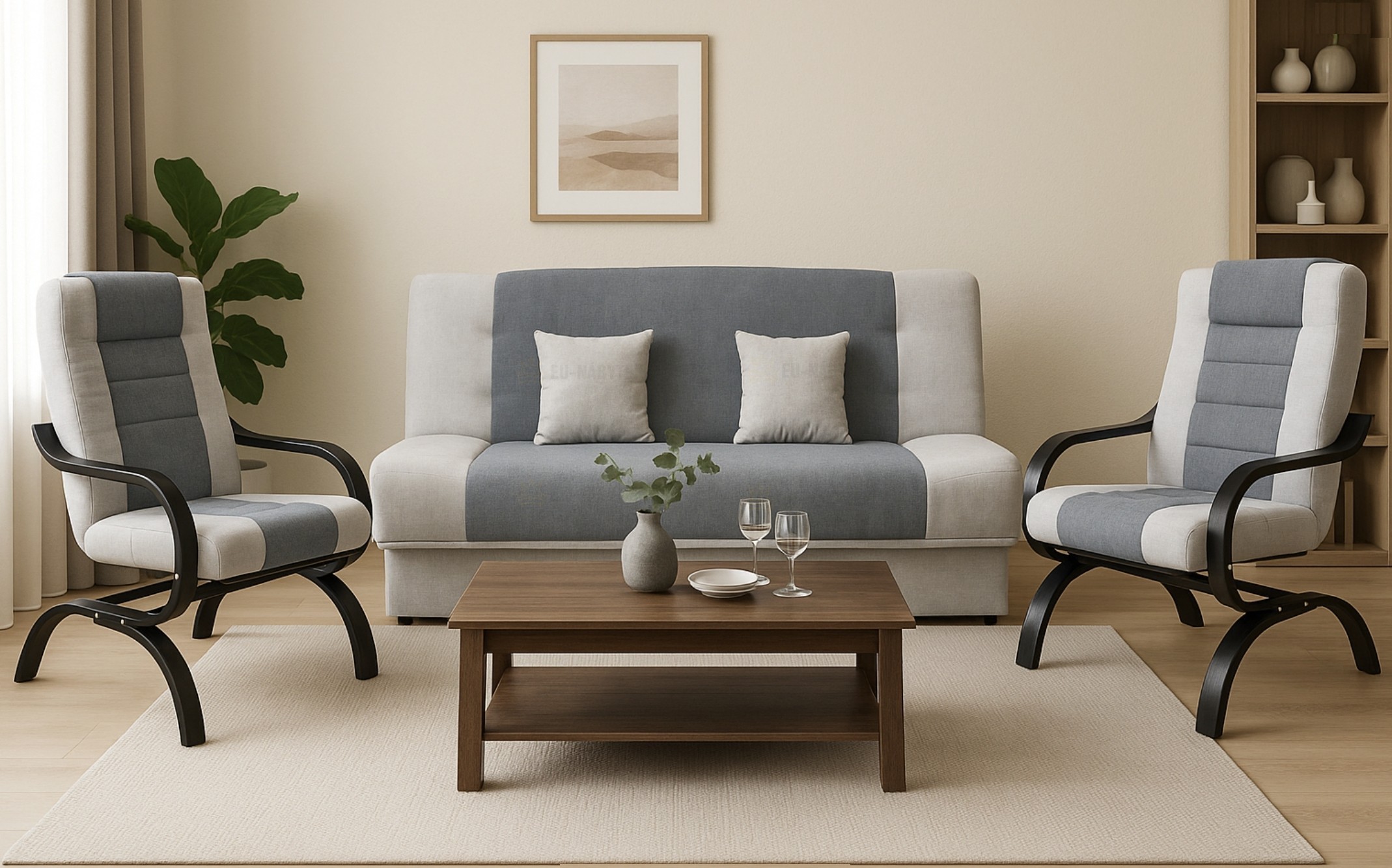 Sedací souprava Gregor 3+1+1, která je velmi praktická a stylová, vhodná nejen do obývacího pokoje v moderním designu. Poskytuje vysoký komfort sezení. Výrobce použil nejkvalitnější materiál včetně dřevené konstrukce v barvě ořech. Pohovka vám nabízí možnost přespání včetně úložného prostoru. Rozměry spací plochy jsou 117x194cm. Celkové rozměry pohovky jsou 194x117x86cm. Rozměry křesel jsou 64x75x104cm. Čalouněná je látkou bergamo200