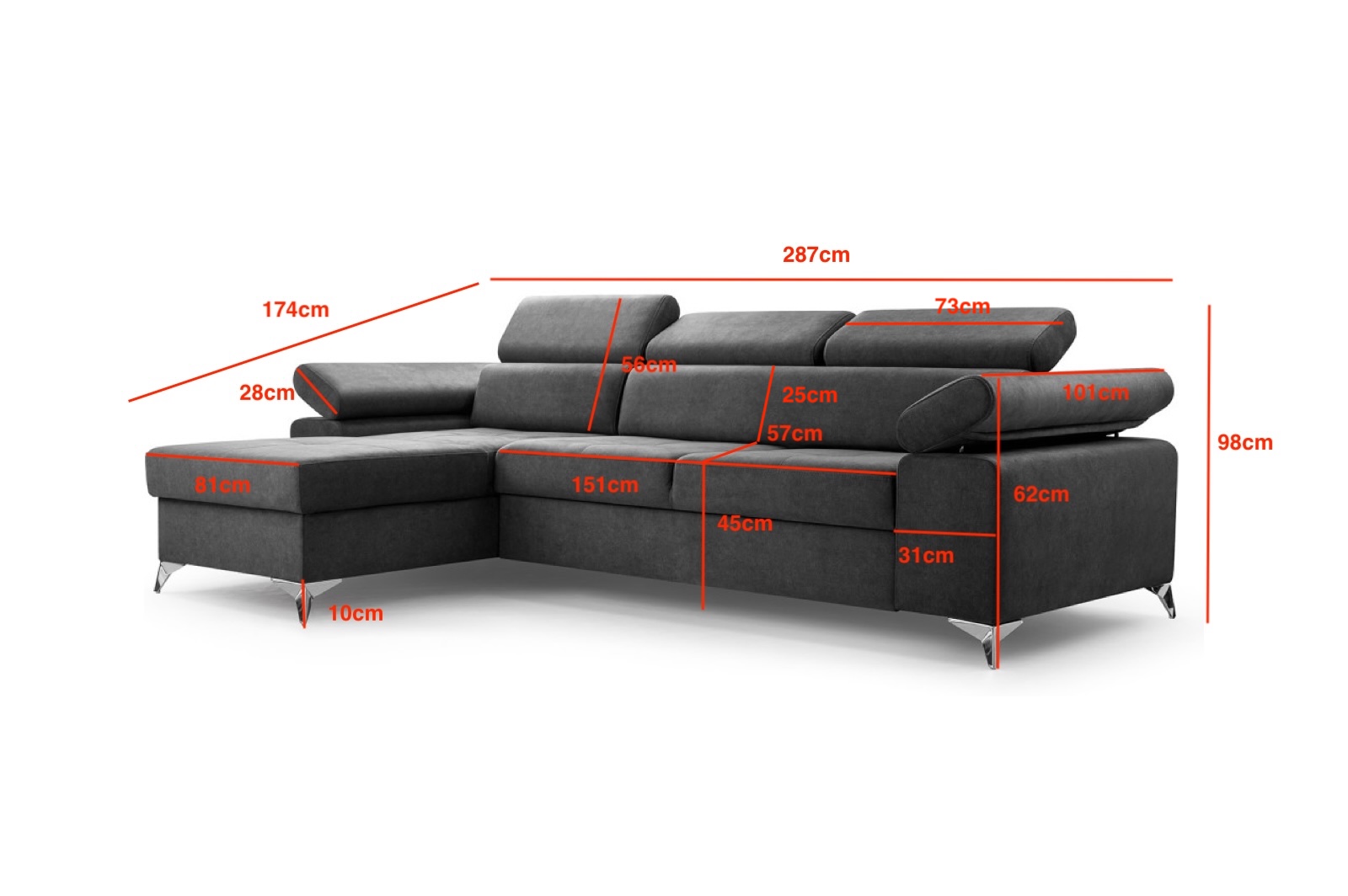 Moderní sedací souprava Marina je ideální pro ty, kteří požadují komfort a vysoké pohodlí. Styl jejího provedení je velice nadčasový a svými liniemi zapadne do každého interiéru. Na sedáky jsou použity pružiny typu Faliste spolu s vysokoelastickou PUR pěnou T30. Velkou výhodou jsou polohovatelné záhlavníky. Zajímavým prvkem jsou designové kovové nožky v barvě stříbrná. Samozřejmostí je úložný prostor a automatický rozklad, díky kterému získáte plochu na spaní o rozměru 203x127cm. Díky čalouněným zádům lze sedací soupravu umístit i volně do prostoru. Čalouněná je kvalitní látkou Vena 7. V nabídce i jiné barevné varianty.