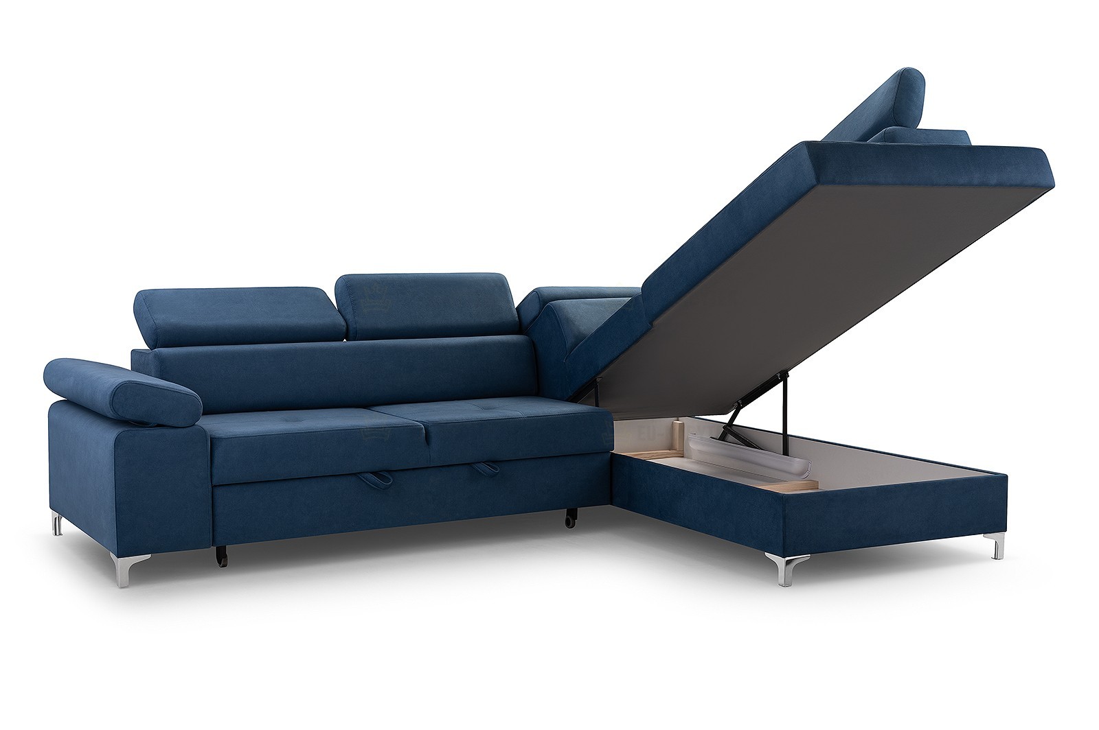 Moderní sedací souprava Marina je ideální pro ty, kteří požadují komfort a vysoké pohodlí. Styl jejího provedení je velice nadčasový a svými liniemi zapadne do každého interiéru. Na sedáky jsou použity pružiny typu Faliste spolu s vysokoelastickou PUR pěnou T30. Velkou výhodou jsou polohovatelné záhlavníky. Zajímavým prvkem jsou designové kovové nožky v barvě stříbrná. Samozřejmostí je úložný prostor a automatický rozklad, díky kterému získáte plochu na spaní o rozměru 223x127cm. Díky čalouněným zádům lze sedací soupravu umístit i volně do prostoru. Čalouněná je kvalitní látkou Vena 12. V nabídce i jiné barevné varianty.