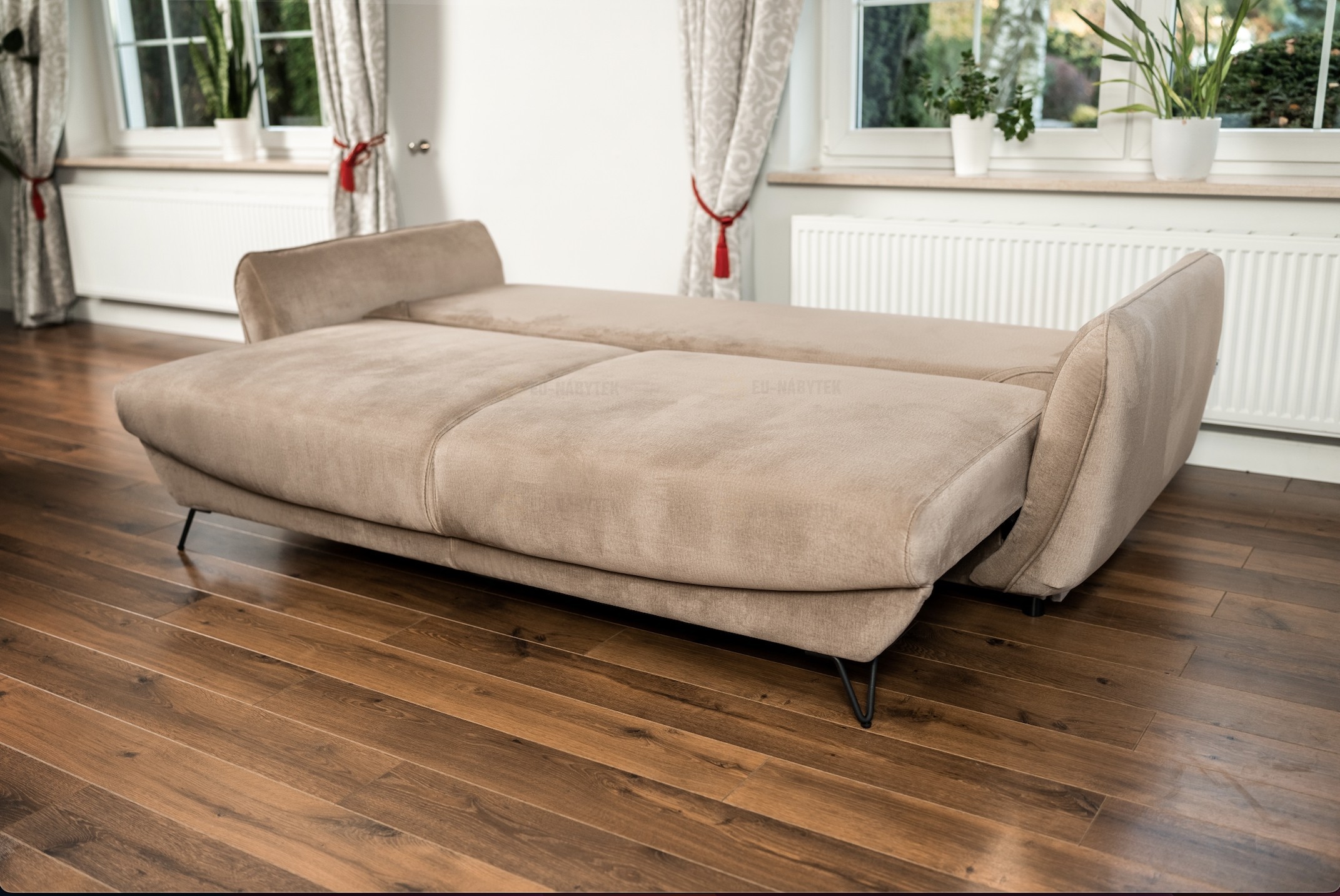 Moderní nadčasová sedací souprava Silvie, která garantuje vysokou kvalitu provedení a dlouhou životnost. Jedním ze základních zajímavých prvků jsou designové černé kovové nožky. Sedací souprava má jednoduchý systém rozkládání včetně úložného prostoru, který se nachází v hlavní části pohovky. Pohodlné sezení u pohovky zaručuje vysokoelastická HR pěna a pružiny Falisty. Souprava se skládá z křesla (93x95x82cm), taburetu (67x67x42cm) a pohovky (236x95x90cm), která po rozložení disponuje spací plochou o rozměru 145x200cm. Sestava je čalouněná látkou Poco 10. V nabídce i v jiném barevném provedení.