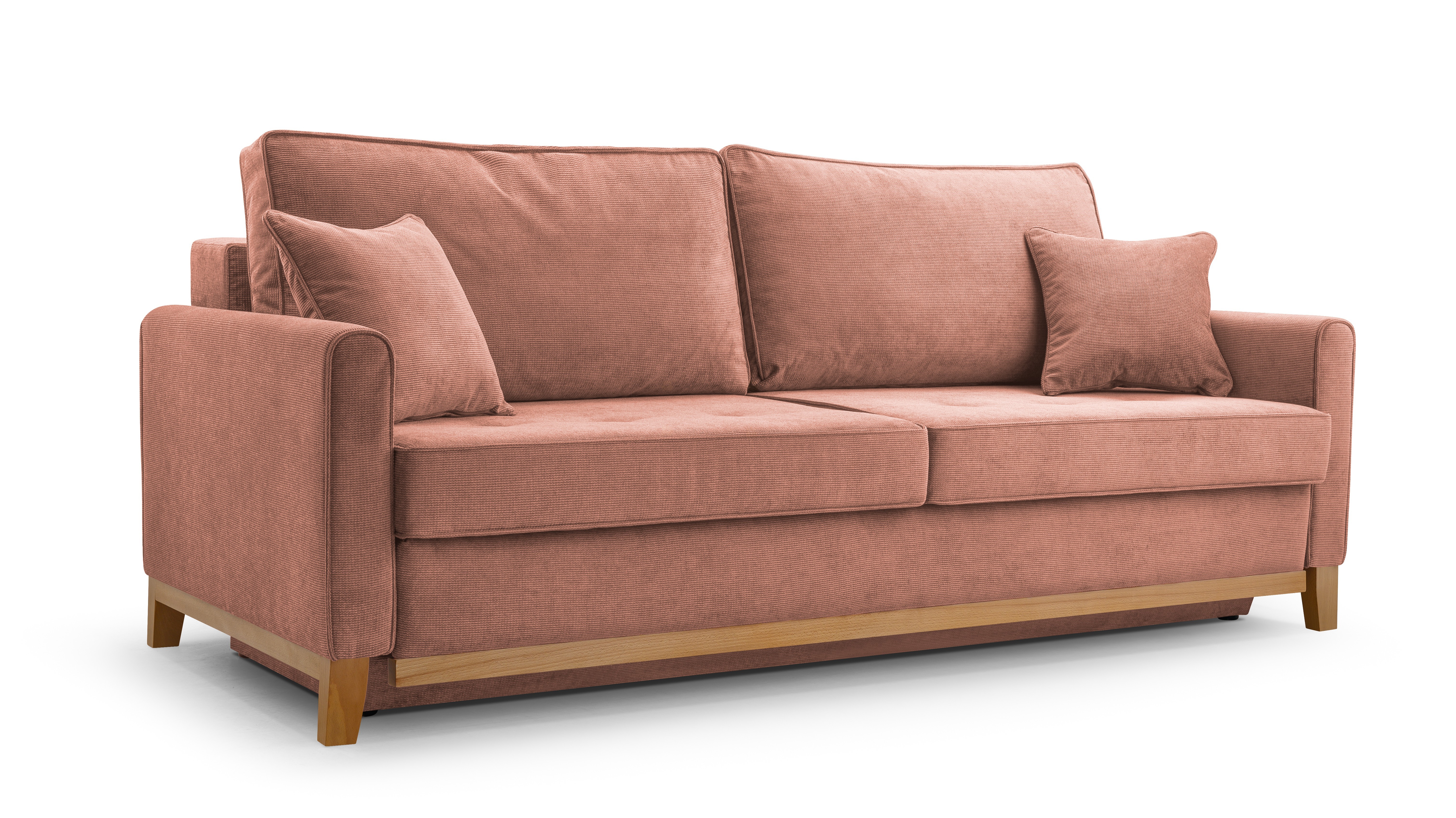 Minimalistická rozkládací pohovka Armin je ideální pro moderní interiéry. Vyznačuje se jednoduchým,ekonomickým designem, ale zároveň umožní odpočinek na měkkém sedadle, ve kterém se využívá PUR pěna T30 a kvalitní pružiny Faliste. Moderním prvkem jsou dřevěné nožky. Pohovka je rozkládací, s úložným prostorem. Po rozložení získáte spací plochu o rozměru 191x140cm. Polštáře mají praktický povlak na zip. Celočalouněná, vhodná do prostoru. Čalouněná je kvalitní látkou Lincoln 86. V nabídce i v jiném barevném provedení.