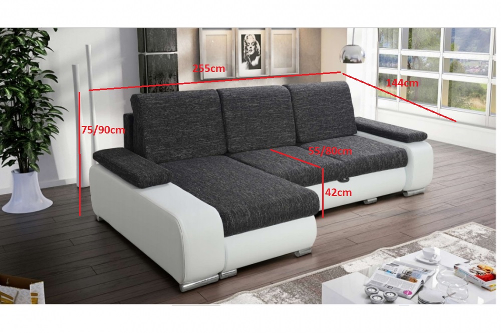 Sedací souprava Latte je ideální pro ty, kteří ocení komfort a pohodlí. Vzhledem k automatickému rozkladu je vhodná i pro ty nejnáročnější zákazníky. Po rozložení vznikne spací plocha 140x203cm. Součástí sedačky jsou úožné prostory pro lůžkoviny o rozměru 130x63cm a 131x61cm. Nadčasový design dodávají moderní područky. Pohodlné a komfortní posezení zaručuje masivní pevná kostra, pružiny Bonell s kvalitní PUR pěnou T25. Praktické jsou polštáře, které mají potah na zip. Hloubka sedu bez polštářů 80cm, s polštáři 55cm, výška sedačky bez polštářů 75cm, výška sedu 42cm. Barevné provedení - Kronos 19 a ekokůže Madryt 1100. Výrobce sedačku nabízí v několika barevných variantách. Vyberte si tak tu, která Vám bude nejvíce vyhovovat.