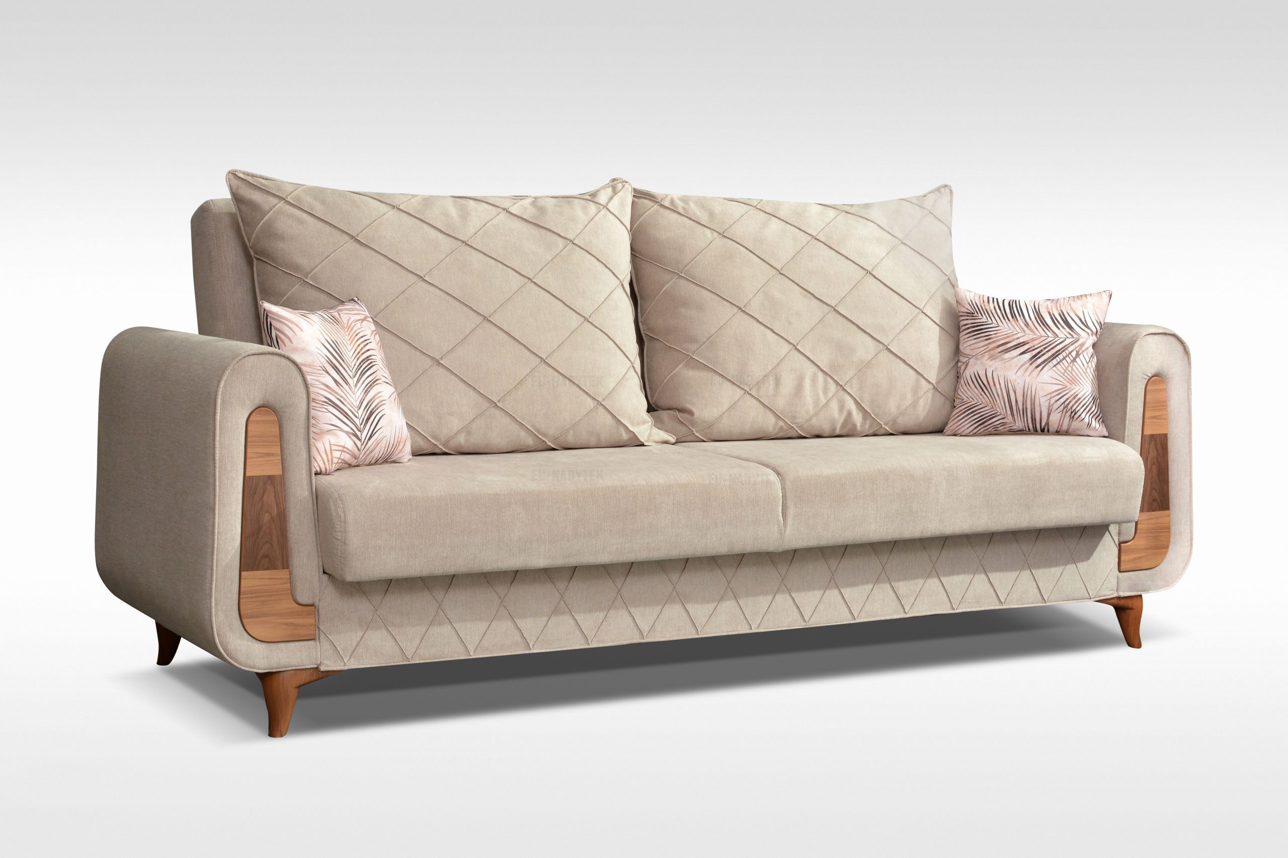 Pohodlná pohovka Bianko je ideálním řešením pro obývací pokoj, pokoj pro návštěvy nebo teenegery jen tak na lenošení. Pohovka má funkci spaní a praktický úložný prostor. Výplň je tvořena z kvalitní pružné PUR pěny. Díky tomuto je zaručen vysoký komfort. Pohovka je celočalouněná a je tedy vhodná do prostoru. Celkové rozměry jsou 244x97x101cm. Plocha na spaní je o rozměru 196x130cm. Velmi zajímavým moderním prvkem jsou dřevěné nožky včetně područek, kvalitní prošití. Čalouněná je kvalitní látkou Orinoco 23. V nabídce i v jiném barevném provedení.