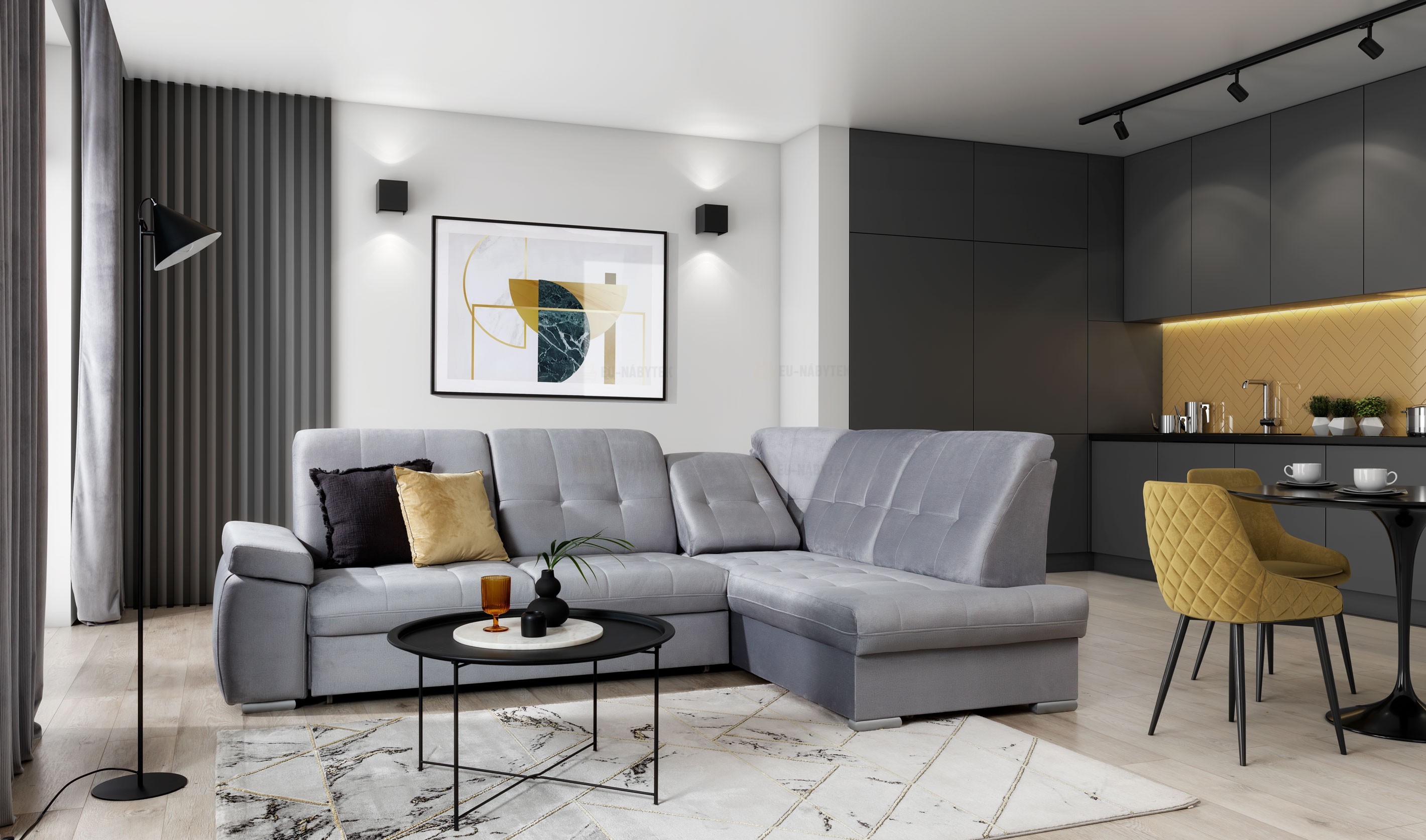 Luxusní rohová sedačka Sandora, která nadchne i ty nejnáročnější zákazníky. Sedačka má velmi kvalitní prošití, které dodává sedačce jedinečný vzhled. Konstrukce sedačky je z kvalitního materiálu včetně sezení z PUR pěny T30 a pružin Faliste. Velkou výhodou jsou nastavitelné pohodlné vysoké opěrky zad, díky kterým si dopřejete ten nejpohodlnější odpočinek. Doplněna je moderními stříbrnými nožkami odolné proti poškození o výšce 5cm. Samozřejmostí je praktický úložný prostor pro úschovu lůžkovin a také automatický rozklad. Po rozložení tak získáte spací plochu o rozměru 207x130cm. Čalouněná je kvalitní látkou Nube 45. Na stránce naleznete další barevné varianty. Celočalouněná - vhodná do prostoru.