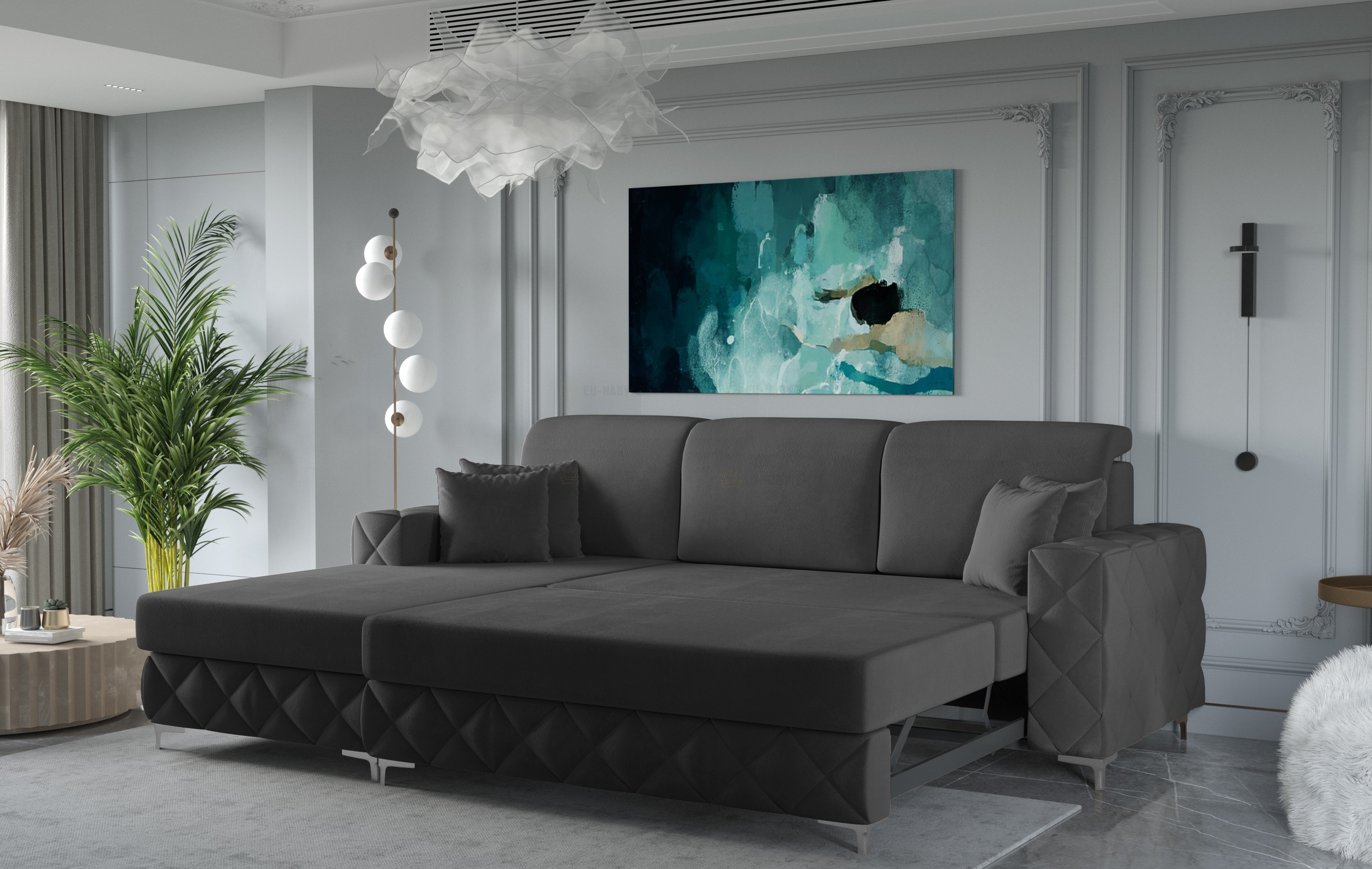 Velmi zajímavá moderní sedačka BORA MINI s velmi zajímavým propracováním. Netradiční a velmi moderní vzhled. Nadchne především milovníky velkého prostoru. Sedačka obsahuje také úložný prostor v bočním otomanu i prostor pro příležitostné spaní. Po rozložení vznikne spací plocha o rozměru 135x190cm. Kvalitní sezení zaručují pružiny Faliste spolu s vysokoelastickou PUR pěnou. Designovým doplnkěm jsou kovové chromované nožky a zajímavé kvalitní prošívání. Rozměry sedačky jsou 236x175x96cm. Čalouněná je kvalitní látkou Monolith 09. V nabídce i v jiném barevném provedení.