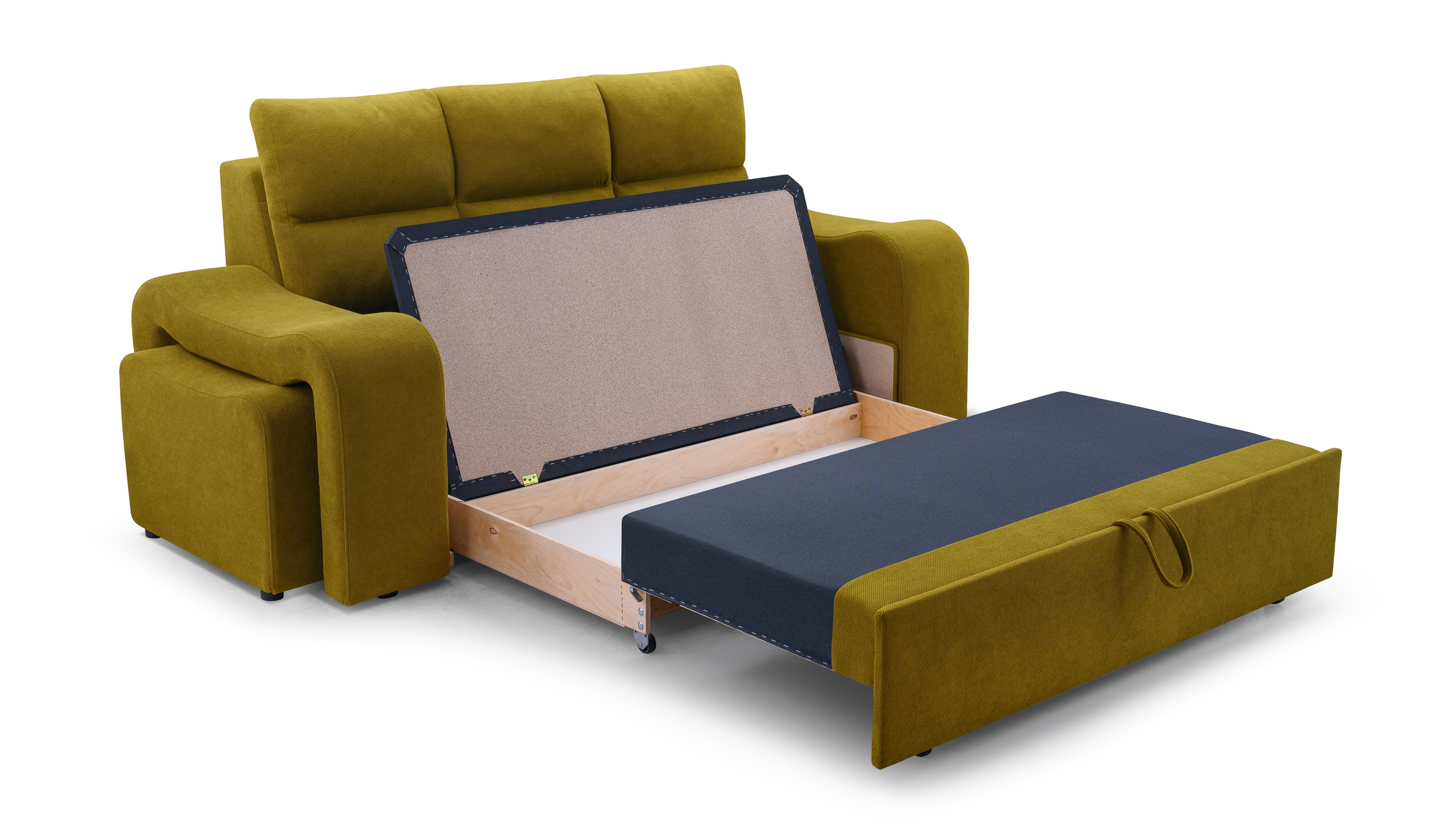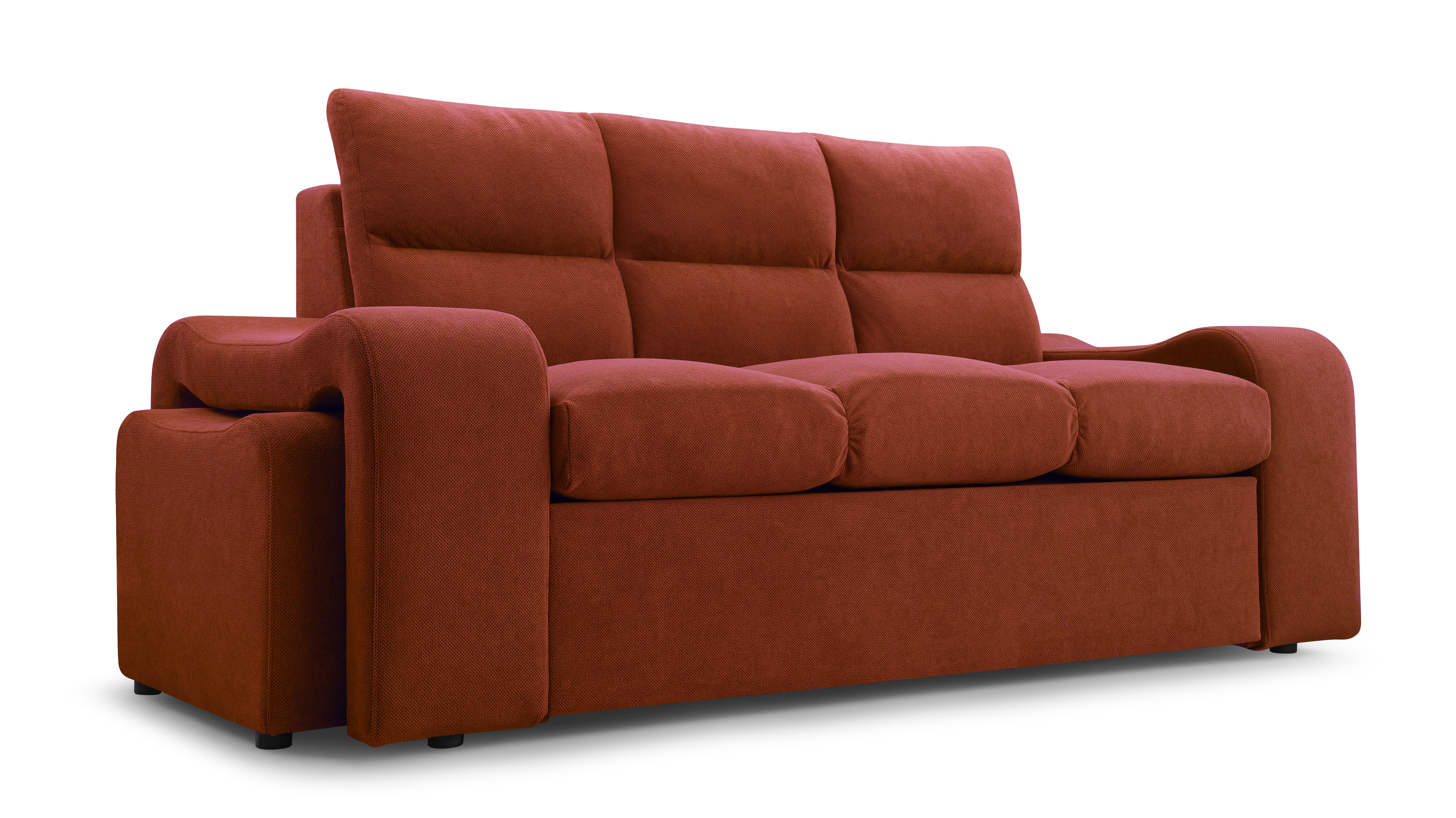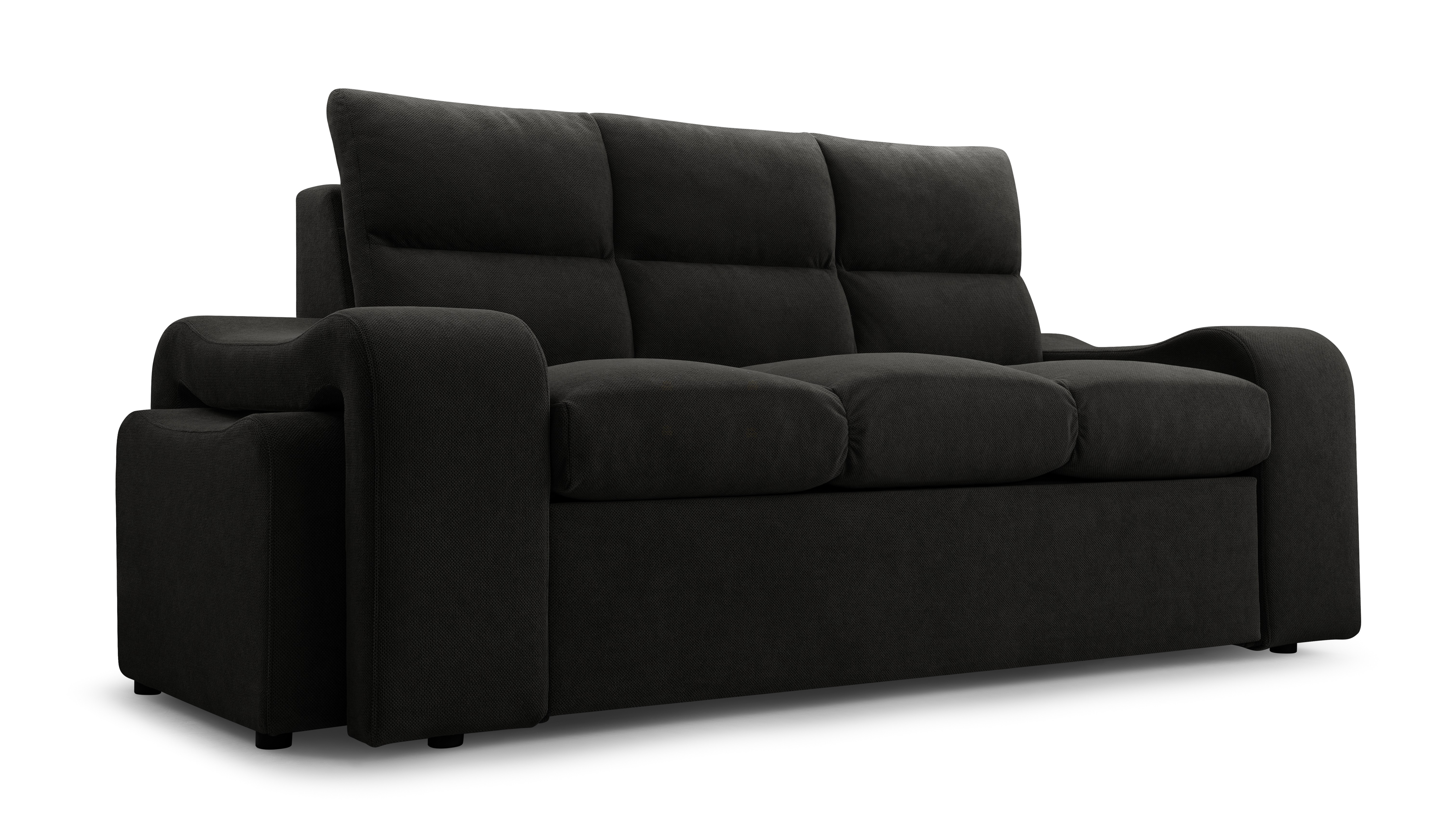 Praktická celočalouněná pohovka včetně dvou praktických taburetů, které lze lehce zasunout do stran pohovky a ušetříte tím tak spoustu prostoru. Pohovka disponuje také úložným prostorem pro úschovu kůžkovin a spací plochou, která má rozměry 148x197cm. Pohodlné sezení zaručují pružiny Faliste a kvalitní PUR pěna T35. Čalouněná je kvalitní látkou Curio 93. V nabídce naleznete i další barevné varianty.