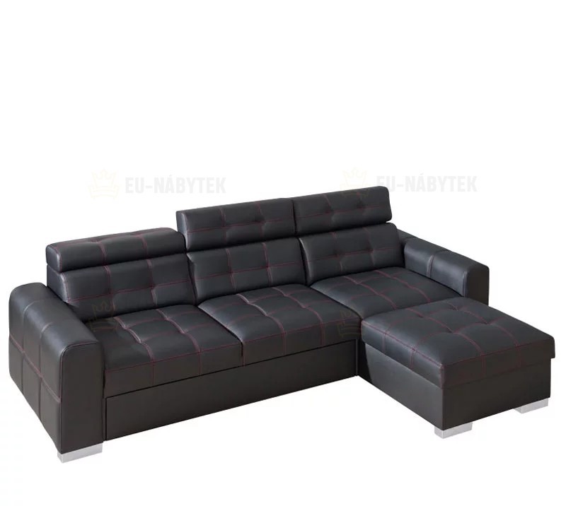 Luxusní rohová sedačka IRMA, která nadchne především svým kvalitním zpracováním prošití. Vhodná i pro náročnější zákazníky. Barevná červená nit prošití, která dodává sedačce jedinečný vzhled. Konstrukce sedačky je z kvalitního materiálu včetně sezení z PUR pěny a pružin Faliste a Bonell. Velkou výhodou jsou praktické polohovací záhlavníky, díky kterým si dopřejete ten nejpohodlnější odpočinek. Doplněna je moderními stříbrnými nožičkami. Samozřejmostí je praktický úložný prostor pro úschovu lůžkovin v bočním otomanu a také automatický rozklad, který nesmí sedačce chybět. Po rozložení tak získáte spací plochu o rozměru 203x125cm. Čalouněná je kvalitní látkou Long Island 16 - imitace kůže. Celočalouněná - vhodná do prostoru. V nabídce i v jiných rozměrech.