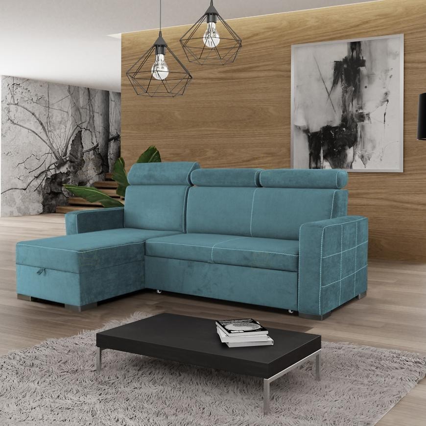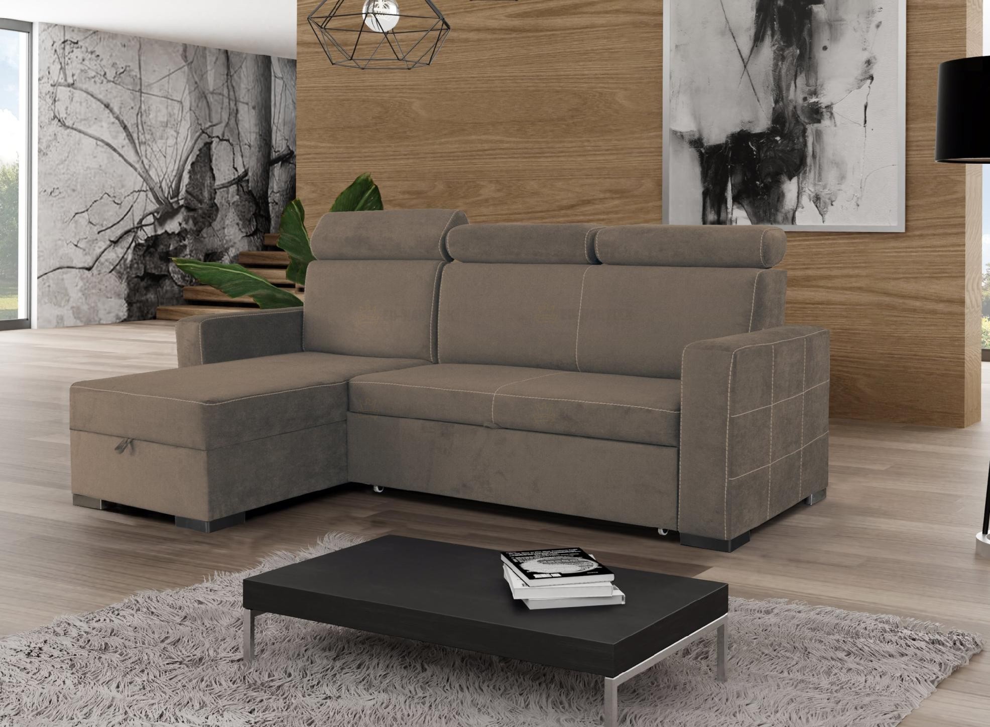 Moderní rohová sedačka Holmar, která nadchne i ty nejnáročnější zákazníky. Sedačka má velmi kvalitní prošití, které dodává sedačce jedinečný vzhled. Konstrukce sedačky je z kvalitního materiálu včetně sezení z PUR pěny a pružin Faliste. Velkou výhodou jsou praktické polohovací záhlavníky, díky kterým si dopřejete ten nejpohodlnější odpočinek. Samozřejmostí je praktický úložný prostor pro úschovu lůžkovin v bočním otomanu a také automatický rozklad. Po rozložení tak získáte spací plochu o rozměru 210x125cm. Čalouněná je kvalitní látkou Primo 73. Na stránce naleznete další barevné varianty.