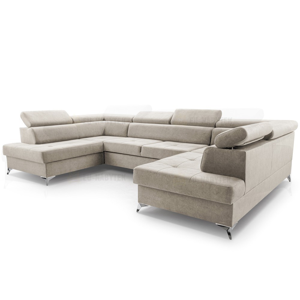 Moderní praktická sedačka Madras, která nadchne milovníky velkých prostorných sedaček. Sedačka je ideání pro ty, kteří ocení také komfort a pohodlí. Velkou předností jsou polohovatelné záhlavníky, díky kterým si dopřejete skvělý odpočinek. Sedačka obsahuje dva úložné prostory v bočních otomanech a prostor na příležitostné spaní. Po rozložení je spací plocha 127 x 260 cm. Moderním prvkem jsou kovové chromované nožky, které sedačce dodají zajímavý design. Tkanina vysoké kvality, masivní pevná kostra, pružiny Faliste s kvalitní PUR pěnou T30. Čalouněná je kvalitní látkou Vena 3. V nabídce ji naleznete i v dalším barevném provedení.