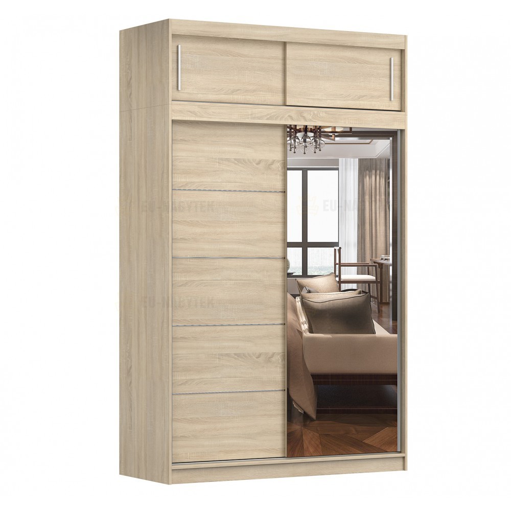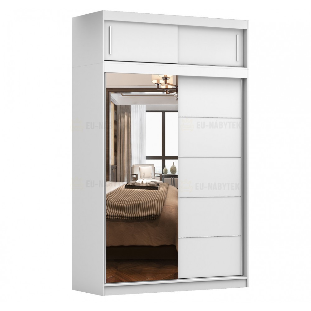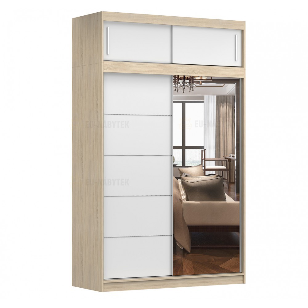 Tato šatní skříň v dekoru dub sonoma a bílá je skloubení moderního vzhledu a velmi velkého úložného prostoru. Vyrobena je z kvalitního lamina o síle 16mm. Hrany jsou lemovány kvalitní páskou ABS, která zaručuje dlouhou životnost. Nabízí vše co budete potřebovat pro dokonalou organizaci Vašeho šatníku. Naleznete zde šatní tyč a mnoho policových přihrádek. Navíc je tato skříň vybavena praktickým zrcadlem na posuvných dveřích. Tento nábytek lze zakomponovat jak do obývacíhi pokoje, ložnice ale i dětského pokoje. V nabídce ji naleznete i v jiném barevném provedení.