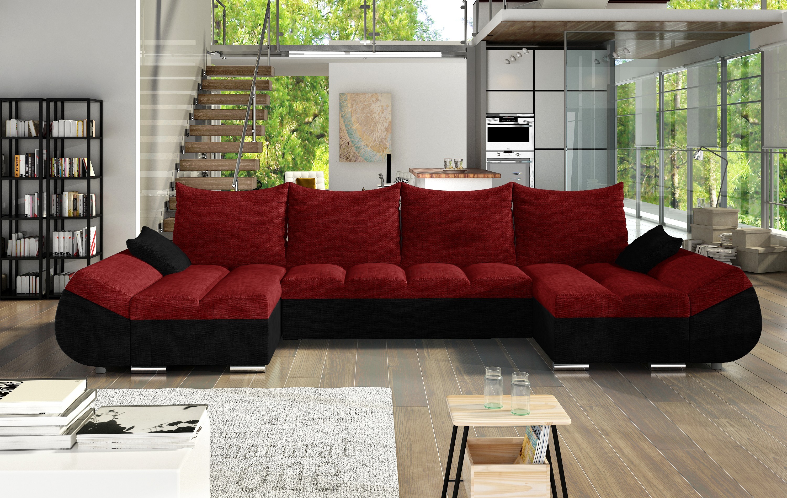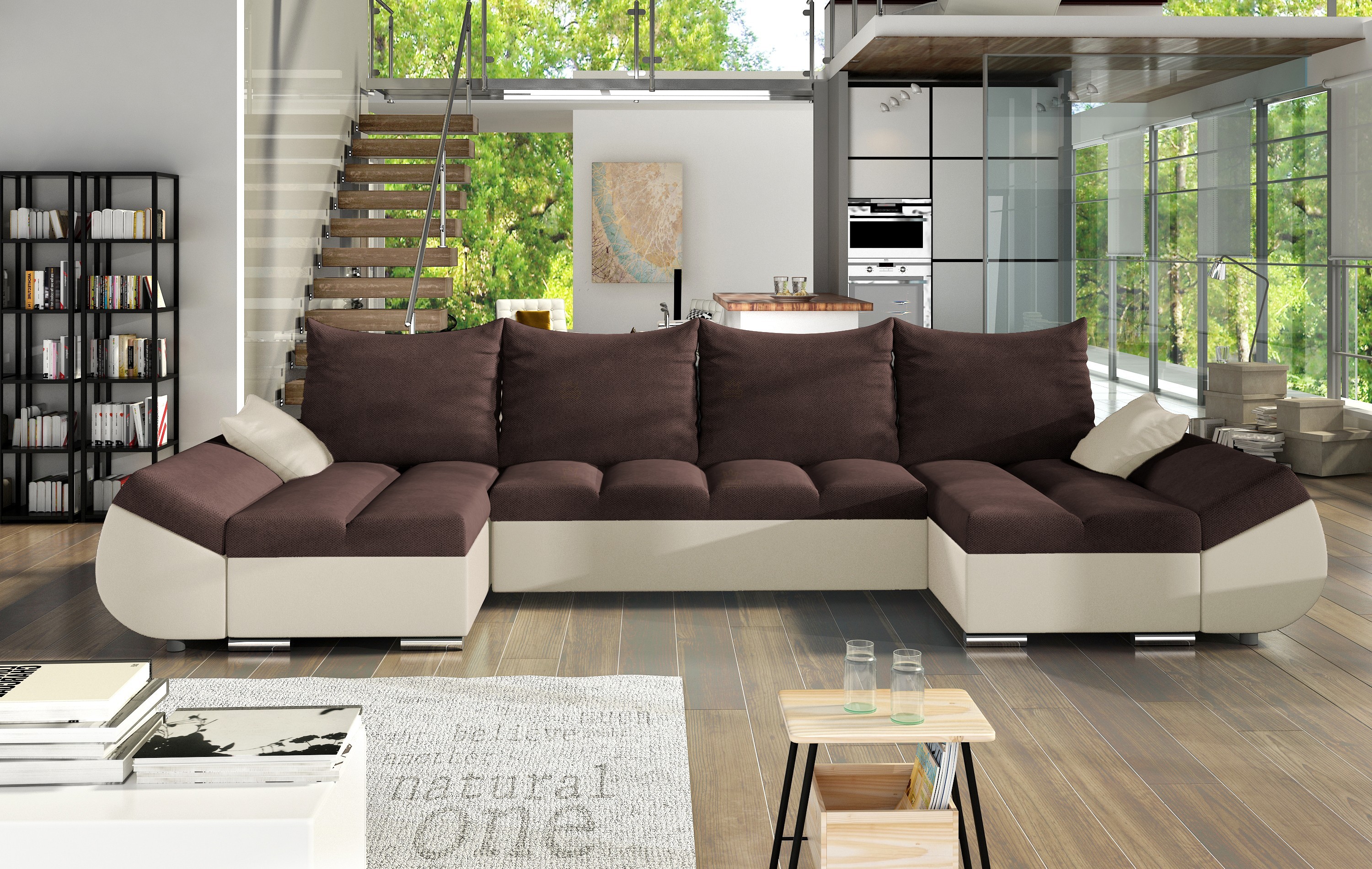 Praktická celočalouněná rohová sedačka Cortina s velmi netradičním a moderním vzhledem. Nadchne především svým zajímavě prošitým sezením, které je díky kvalitní PUR pěně T30 a pružinám Faliste velmi pohodlné. Sedačka obsahuje úložný prostor a prostor na příležitostné spaní. Po rozložení je spací plocha 120x269cm. Při rozkladu se sedák nadzvedne a přesune dopředu, zadní část se sklopí do vodorovné polohy a polštáře oddělají. Čalouněná je látkou Rico 04 a ekokůží Madryt 912. V nabídce v několika dalších barevných variantách.