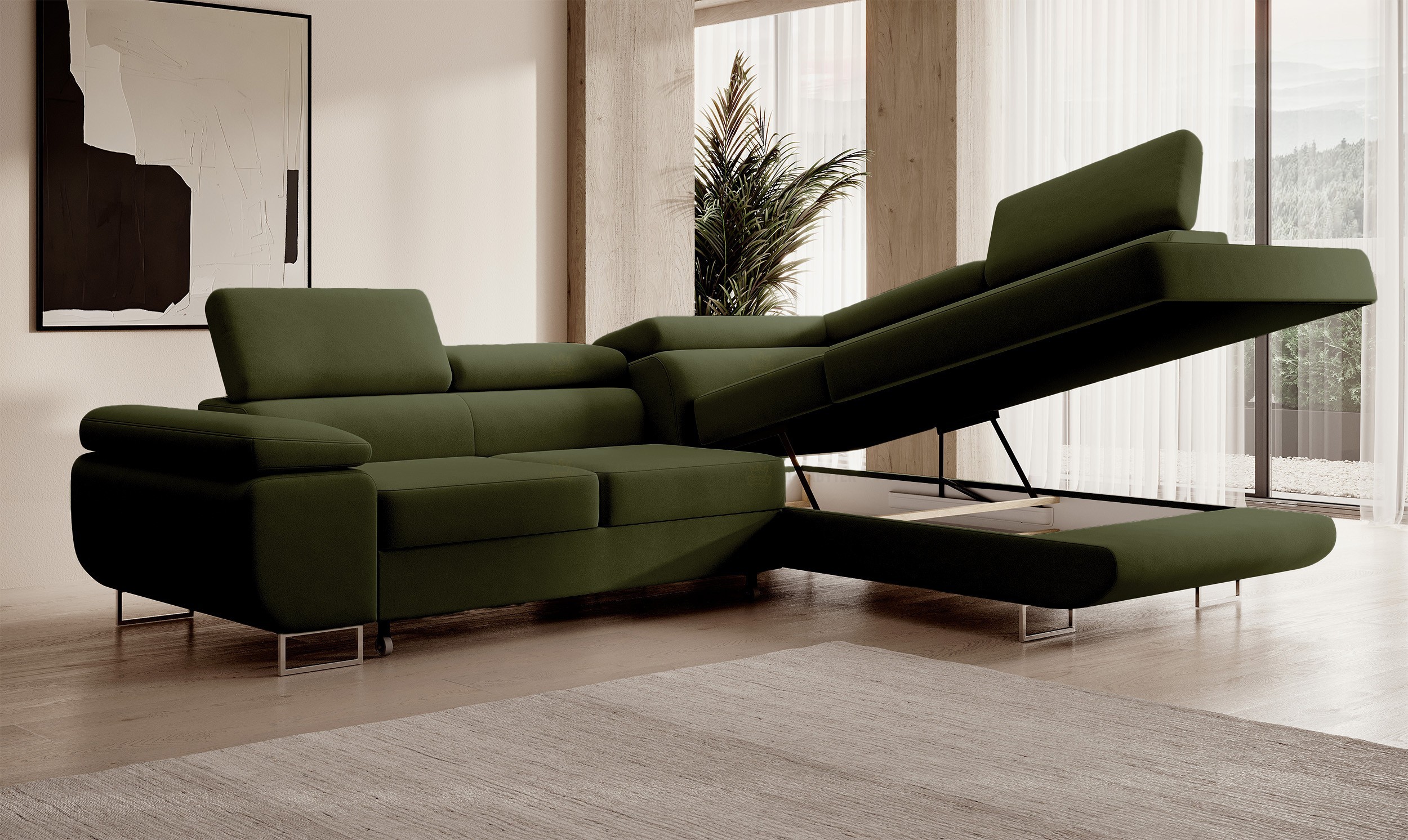 Moderní sedací souprava Stevia je ideální pro ty, kteří požadují komfort a vysoké pohodlí. Styl jejího provedení je velice nadčasový a svými liniemi zapadne do každého moderního interiéru. Na sedáky jsou použity pružiny typu Faliste. Velkou výhodou jsou polohovatelné záhlavníky, díky kterým si dopřejete ten nejlepší odpočinek. Díky čalouněným zádům lze sedací soupravu umístit i volně do prostoru. Lze si vybrat z velké škály barevných provedení, které naleznete na našich stránkách. Samozřejmostí je rozklad a úložný prostor, který se nachází v bočním otomanu.Čalouněná je kvalitní látkou Castel 39.