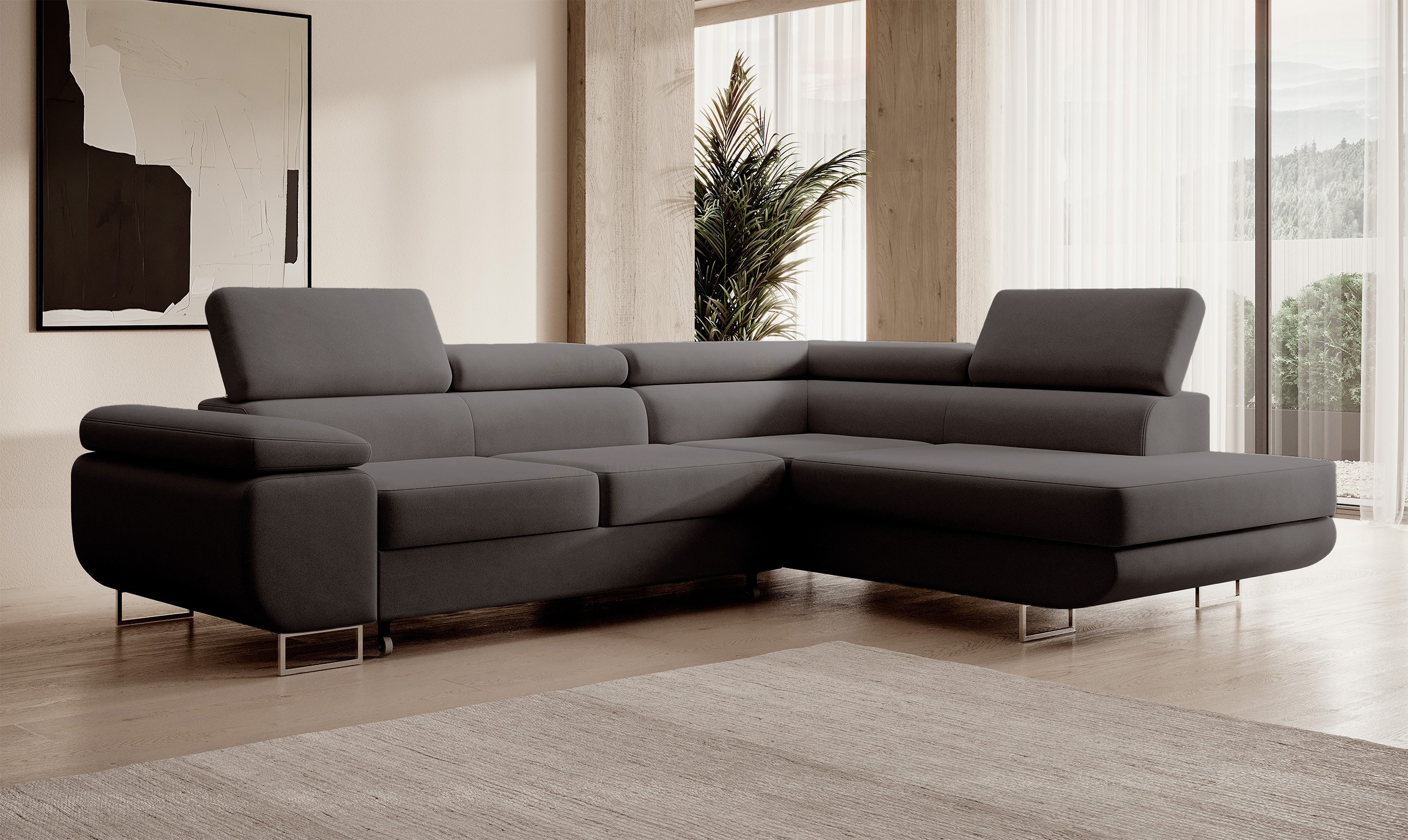 Moderní sedací souprava Stevia je ideální pro ty, kteří požadují komfort a vysoké pohodlí. Styl jejího provedení je velice nadčasový a svými liniemi zapadne do každého moderního interiéru. Na sedáky jsou použity pružiny typu Faliste. Velkou výhodou jsou polohovatelné záhlavníky, díky kterým si dopřejete ten nejlepší odpočinek. Díky čalouněným zádům lze sedací soupravu umístit i volně do prostoru. Lze si vybrat z velké škály barevných provedení, které naleznete na našich stránkách. Samozřejmostí je rozklad a úložný prostor, který se nachází v bočním otomanu.Čalouněná je kvalitní látkou Castel 93.