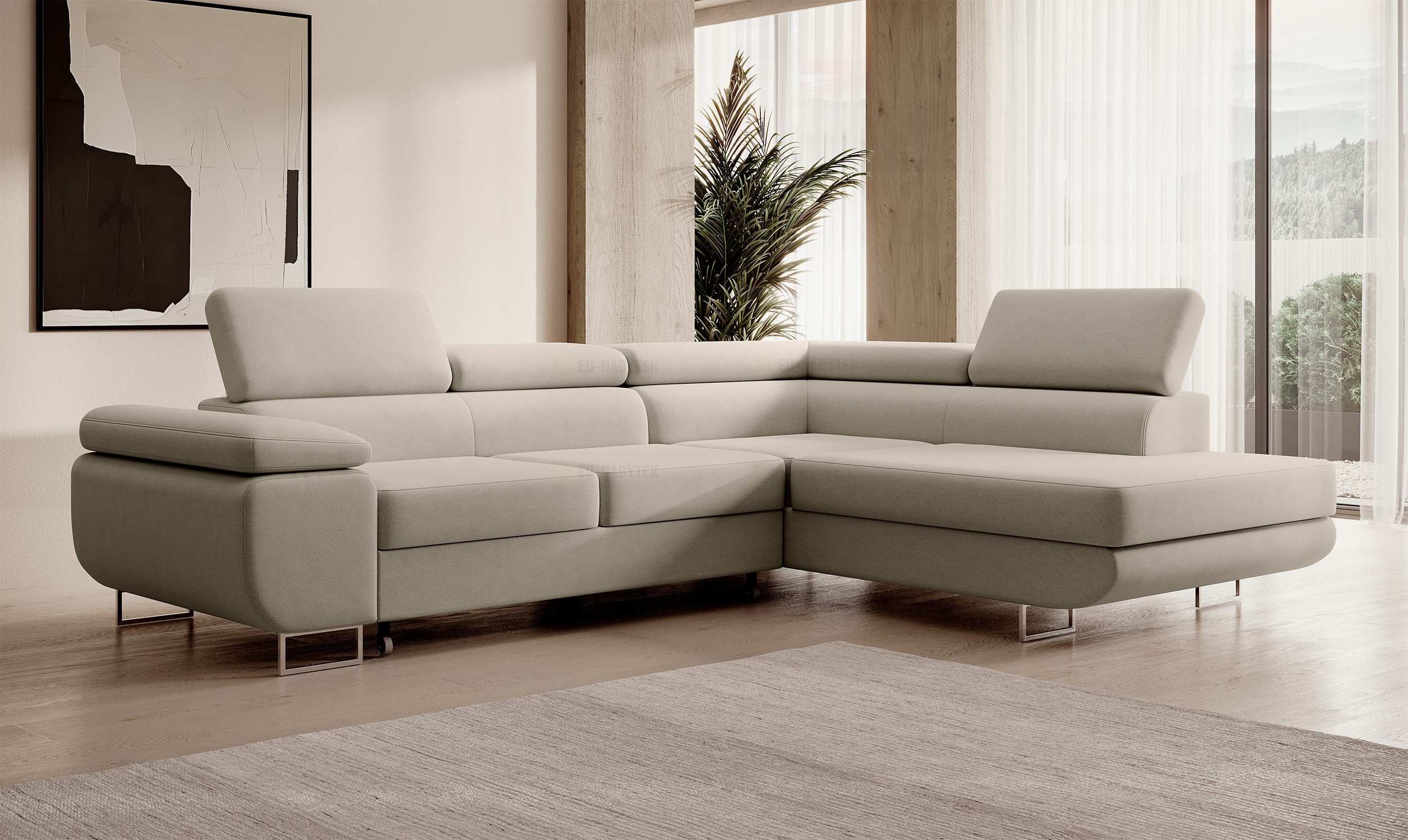 Moderní sedací souprava Stevia je ideální pro ty, kteří požadují komfort a vysoké pohodlí. Styl jejího provedení je velice nadčasový a svými liniemi zapadne do každého moderního interiéru. Na sedáky jsou použity pružiny typu Faliste. Velkou výhodou jsou polohovatelné záhlavníky, díky kterým si dopřejete ten nejlepší odpočinek. Díky čalouněným zádům lze sedací soupravu umístit i volně do prostoru. Lze si vybrat z velké škály barevných provedení, které naleznete na našich stránkách. Samozřejmostí je rozklad a úložný prostor, který se nachází v bočním otomanu.Čalouněná je kvalitní látkou Castel 80.