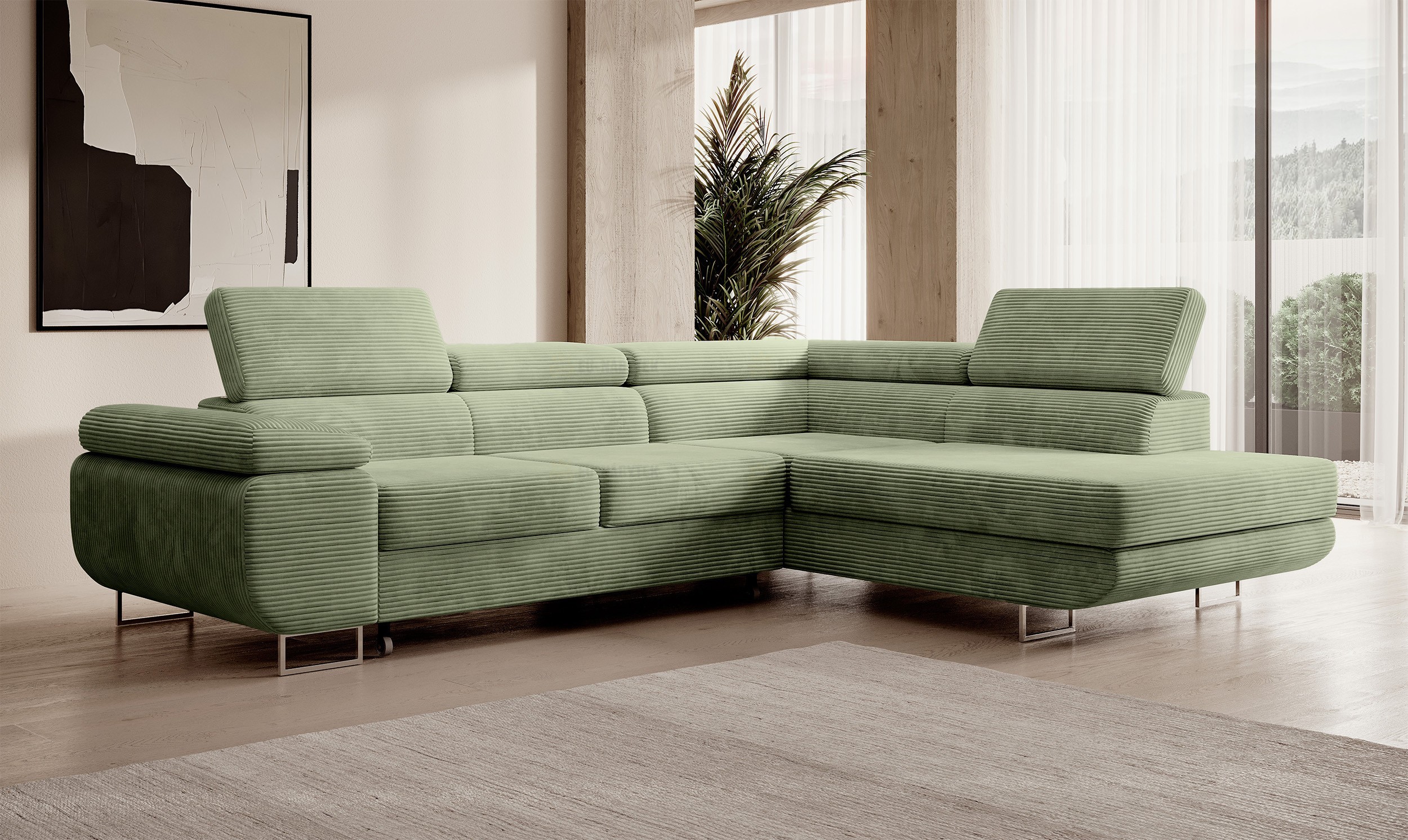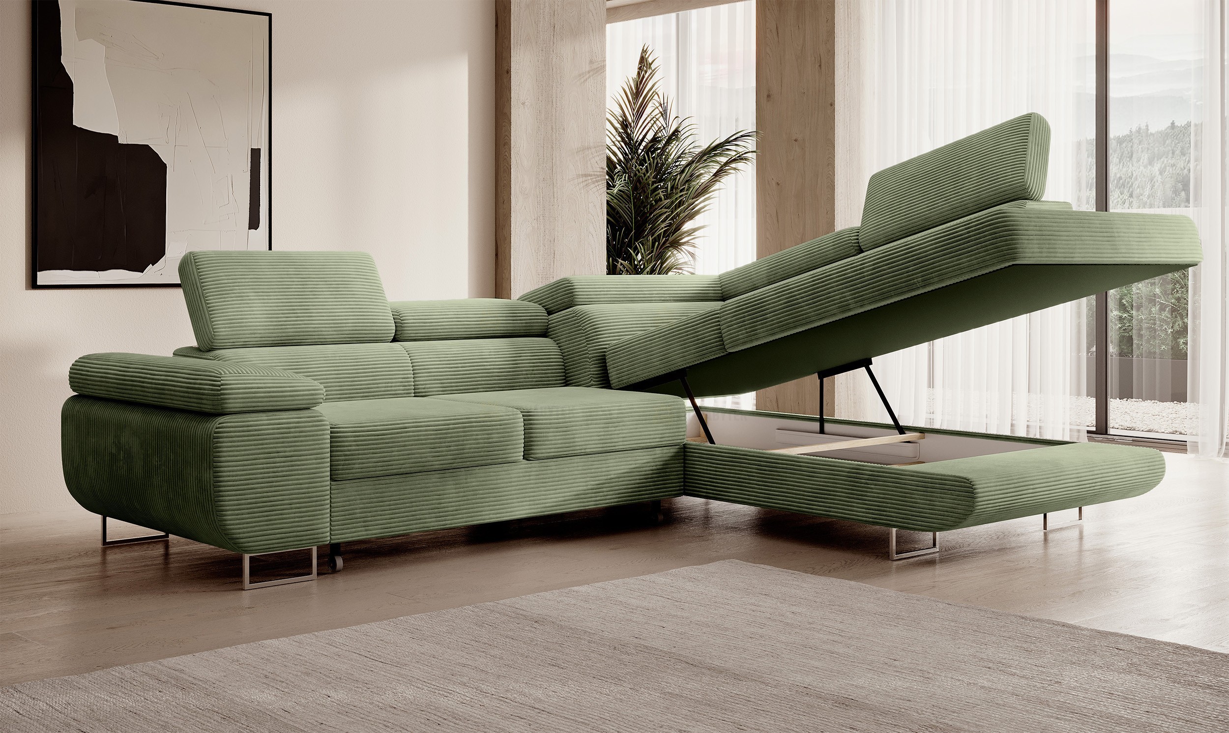 Moderní sedací souprava Stevia je ideální pro ty, kteří požadují komfort a vysoké pohodlí. Styl jejího provedení je velice nadčasový a svými liniemi zapadne do každého moderního interiéru. Na sedáky jsou použity pružiny typu Faliste. Velkou výhodou jsou polohovatelné záhlavníky, díky kterým si dopřejete ten nejlepší odpočinek. Díky čalouněným zádům lze sedací soupravu umístit i volně do prostoru. Lze si vybrat z velké škály barevných provedení, které naleznete na našich stránkách. Samozřejmostí je rozklad a úložný prostor, který se nachází v bočním otomanu.Čalouněná je kvalitní látkou Poso 47.