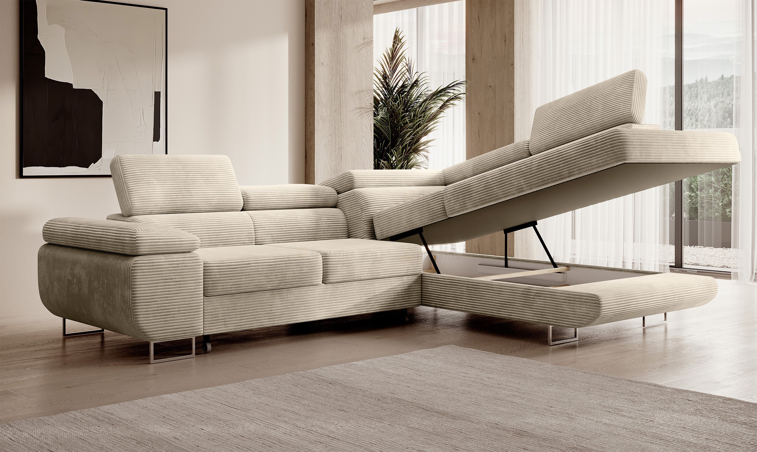 Moderní sedací souprava Stevia je ideální pro ty, kteří požadují komfort a vysoké pohodlí. Styl jejího provedení je velice nadčasový a svými liniemi zapadne do každého moderního interiéru. Na sedáky jsou použity pružiny typu Faliste. Velkou výhodou jsou polohovatelné záhlavníky, díky kterým si dopřejete ten nejlepší odpočinek. Díky čalouněným zádům lze sedací soupravu umístit i volně do prostoru. Lze si vybrat z velké škály barevných provedení, které naleznete na našich stránkách. Samozřejmostí je rozklad a úložný prostor, který se nachází v bočním otomanu.Čalouněná je kvalitní látkou Poso 100.