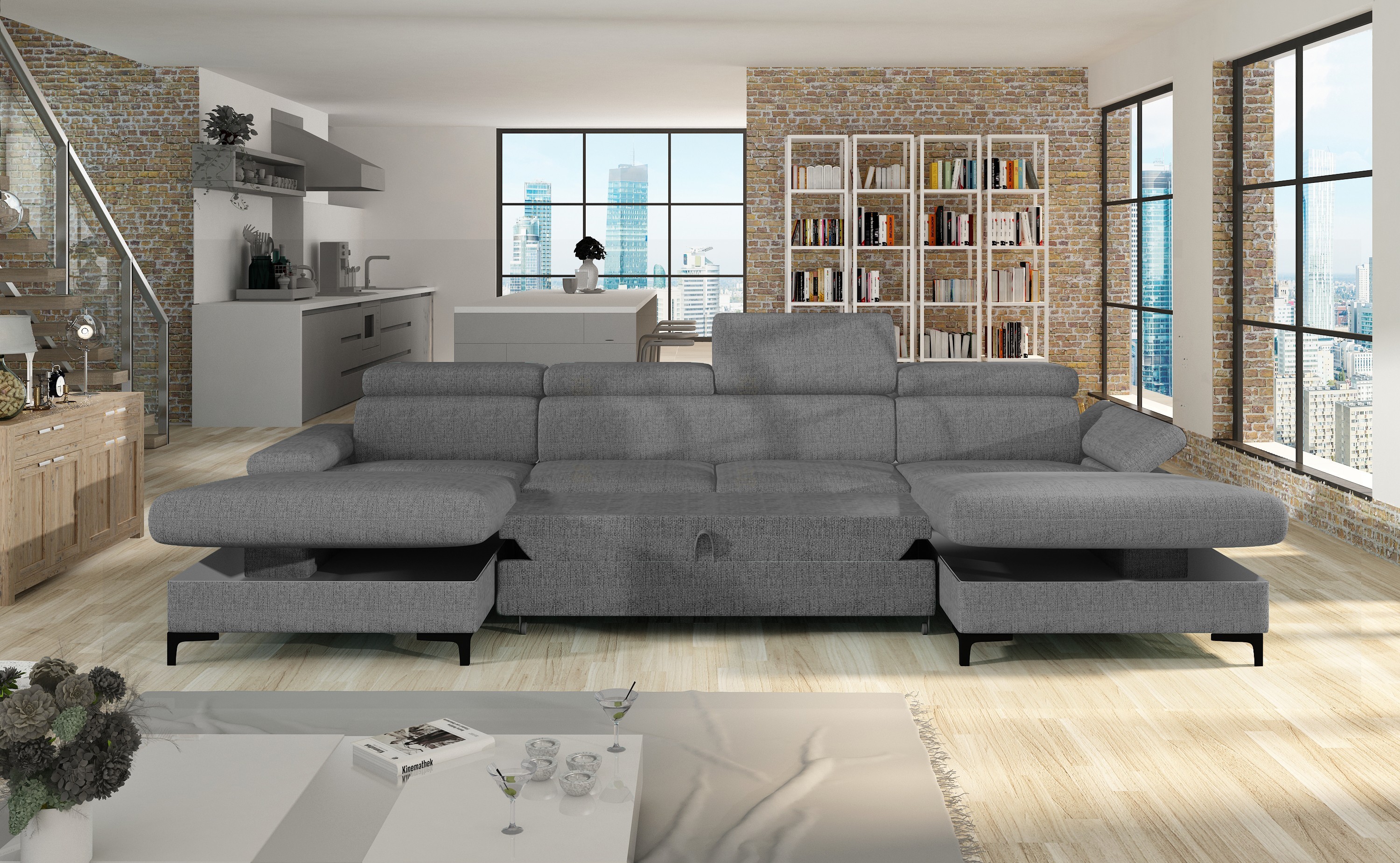 Moderní sedací souprava APOLENA je ideální pro ty, kteří požadují komfort a vysoké pohodlí. Styl jejího provedení je velice nadčasový a svými liniemi zapadne do každého moderního interiéru. Na sedáky jsou použity kvalitní pružiny typu Faliste spolu s vysokoelastickou PUR pěnou. Velkou výhodou jsou čtyři polohovatelné záhlavníky s 6-ti stupňovou regulací a područky. Samozřejmostí je rozklad, díky kterému získáte praktickou plochu pro příležitostné přespání. Praktický úložný prostor se nachází v bočních otomanech. Designovým prvkem jsou černé kovové nožky, které dodávají sedačce luxusní vzhled. Čalouněná je kvalitní látkou Solid 99. V nabídce ji naleznete i v jiných barevných provedeních.