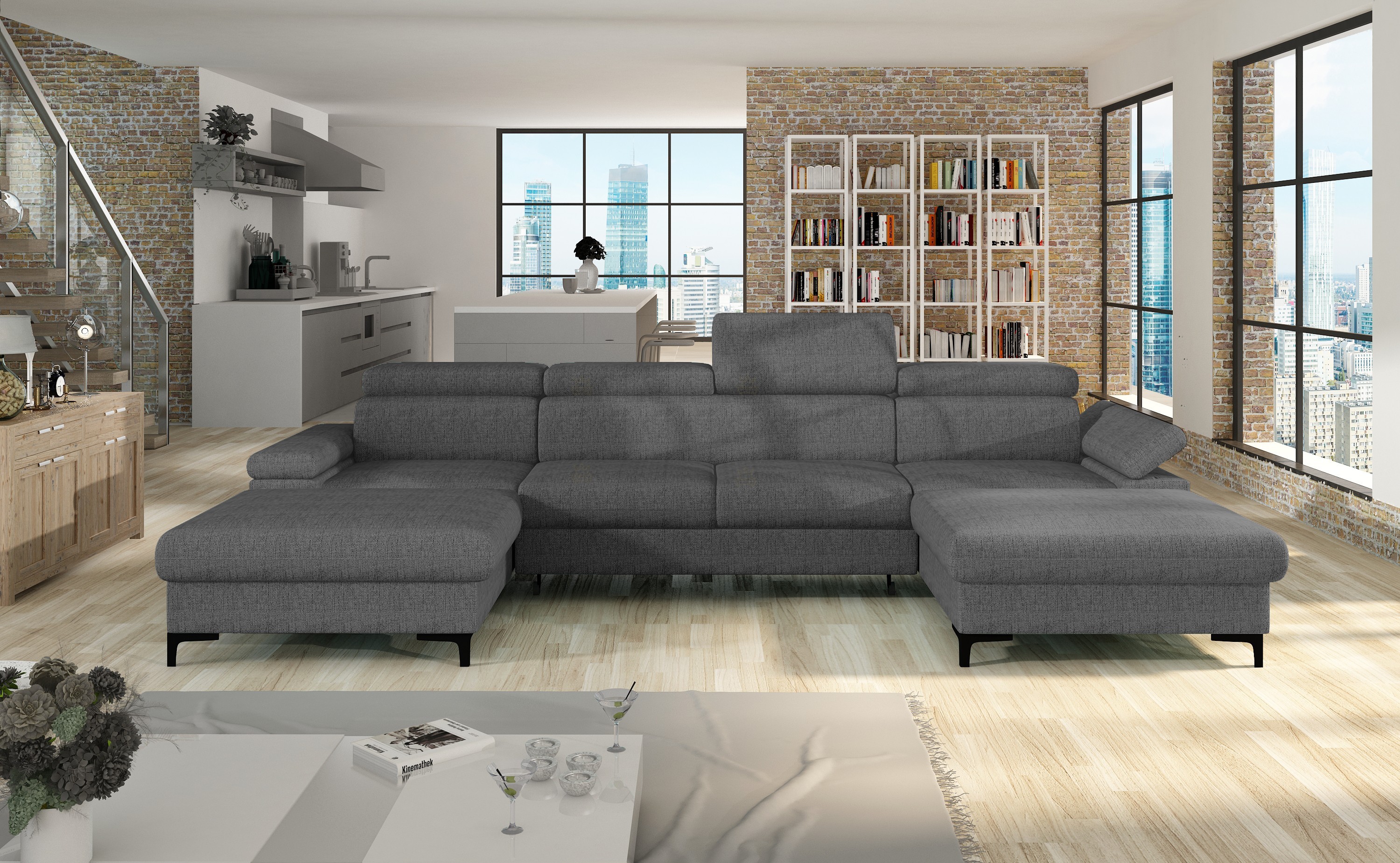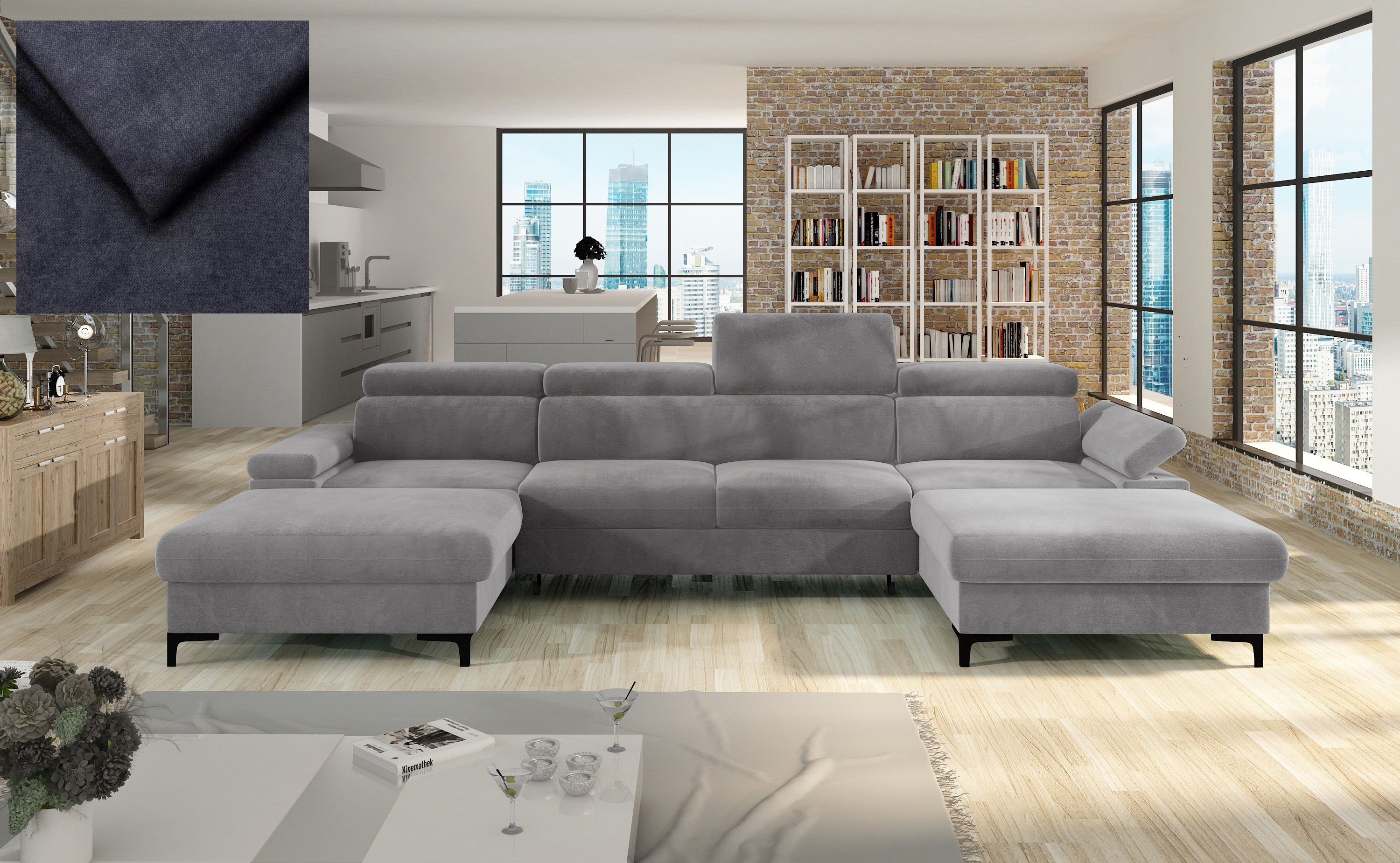 Moderní sedací souprava APOLENA je ideální pro ty, kteří požadují komfort a vysoké pohodlí. Styl jejího provedení je velice nadčasový a svými liniemi zapadne do každého moderního interiéru. Na sedáky jsou použity kvalitní pružiny typu Faliste spolu s vysokoelastickou PUR pěnou. Velkou výhodou jsou čtyři polohovatelné záhlavníky s 6-ti stupňovou regulací a područky. Samozřejmostí je rozklad, díky kterému získáte praktickou plochu pro příležitostné přespání. Praktický úložný prostor se nachází v bočních otomanech. Designovým prvkem jsou černé kovové nožky, které dodávají sedačce luxusní vzhled. Čalouněná je kvalitní látkou Gemma 60. V nabídce ji naleznete i v jiných barevných provedeních.
