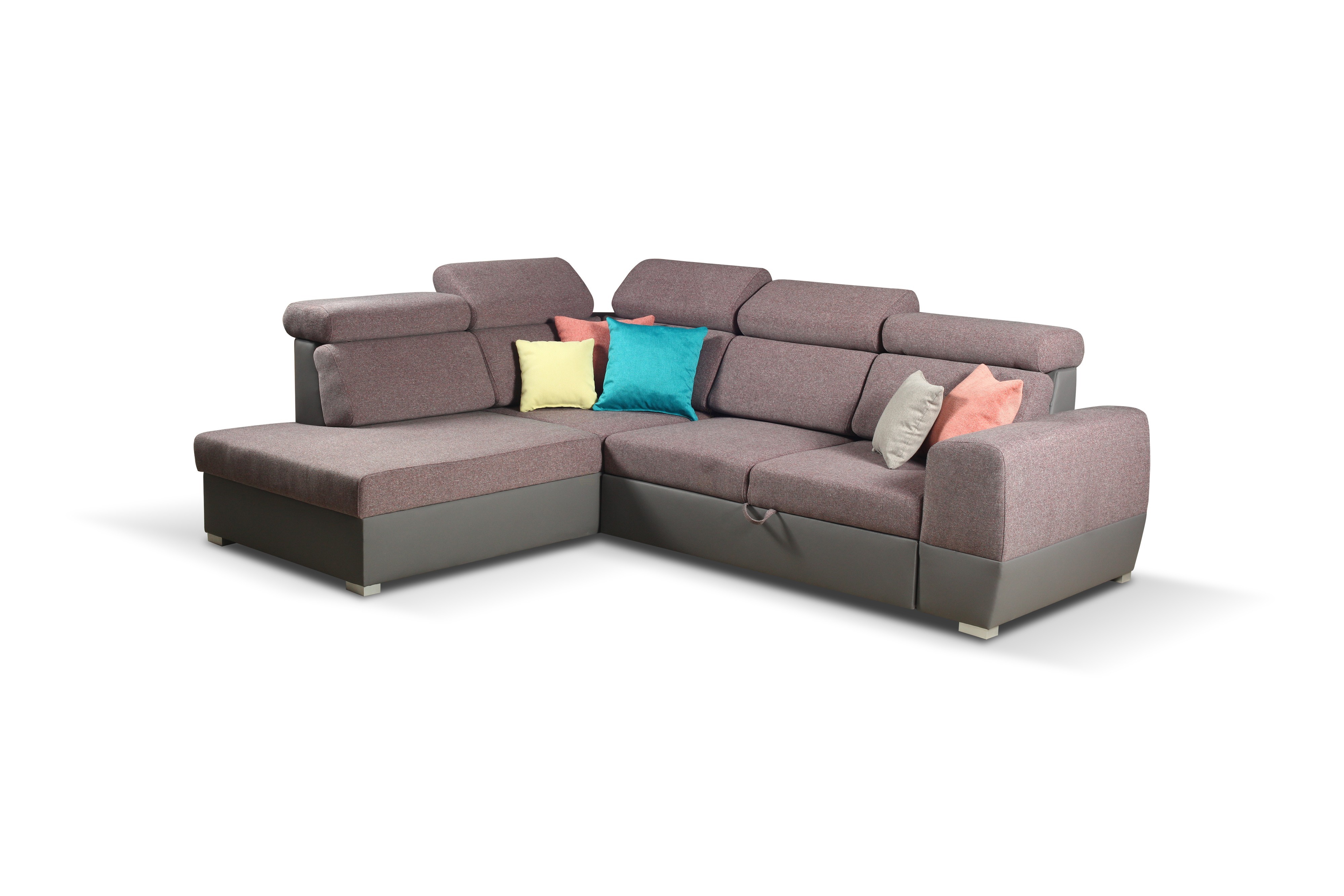Moderní rohová sedačka Mariana, která nadchne i ty nejnáročnější zákazníky. Sedačka má velmi kvalitní zpracování, které dodává sedačce jedinečný vzhled. Konstrukce sedačky je z kvalitního materiálu včetně sezení z vysokoelastické PUR pěny a pružin Faliste. Velkou výhodou jsou praktické polohovací záhlavníky, díky kterým si dopřejete ten nejpohodlnější odpočinek. Samozřejmostí je praktický úložný prostor pro úschovu lůžkovin v bočním otomanu a také automatický rozklad. Po rozložení tak získáte spací plochu o rozměru 207x120cm. Celkové rozměry sedačky jsou 255x205x82cm. Čalouněná je kvalitní látkou Portland 90 a 96.